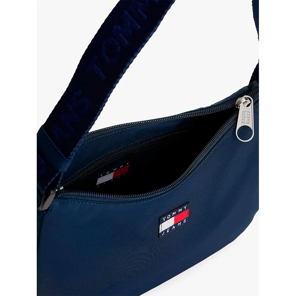 Эта темно-синяя наплечная сумка Daily Essentials в форме полумесяца с застежкой на молнию и нашивкой с логотипом идеально подходит для городского стиля "свободные руки".