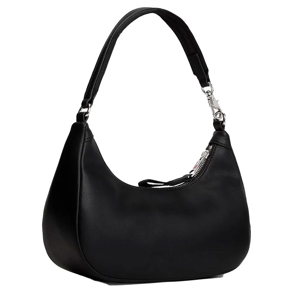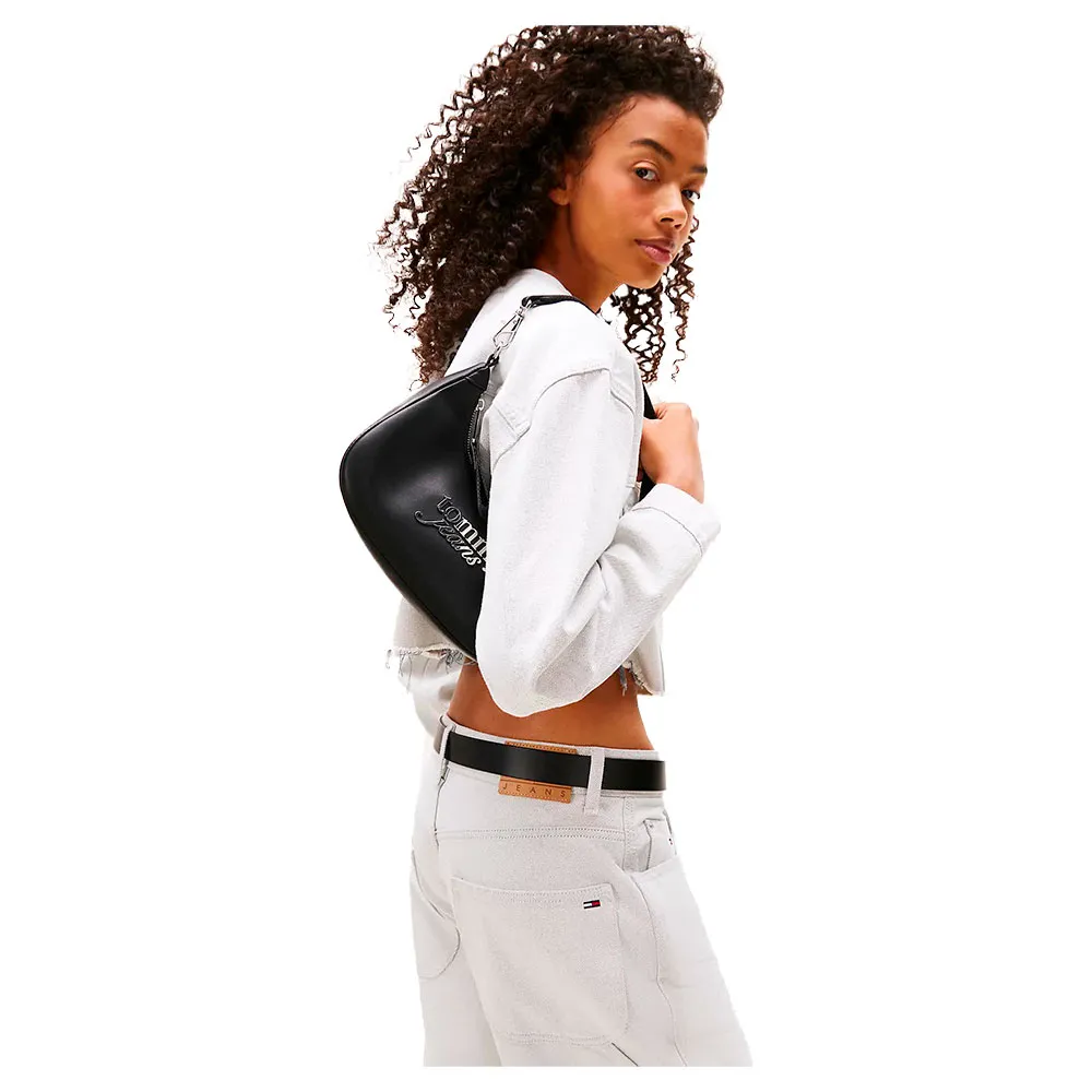 Эта черная сумка через плечо Bold Script в форме полумесяца с яркой надписью Tommy Jeans и массивным ремешком-цепочкой создает образ в стиле уличной одежды.