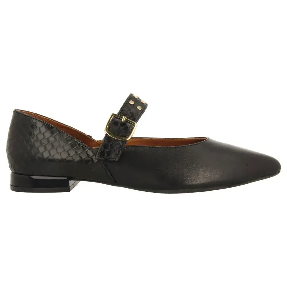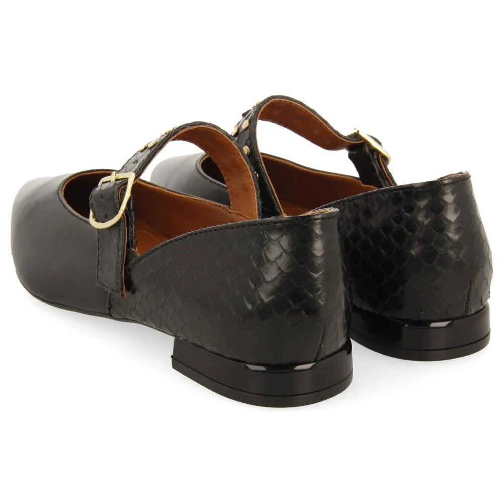 Черные кожаные балетки в стиле Мэри Джейн с заклепками и текстурой в стиле животных.