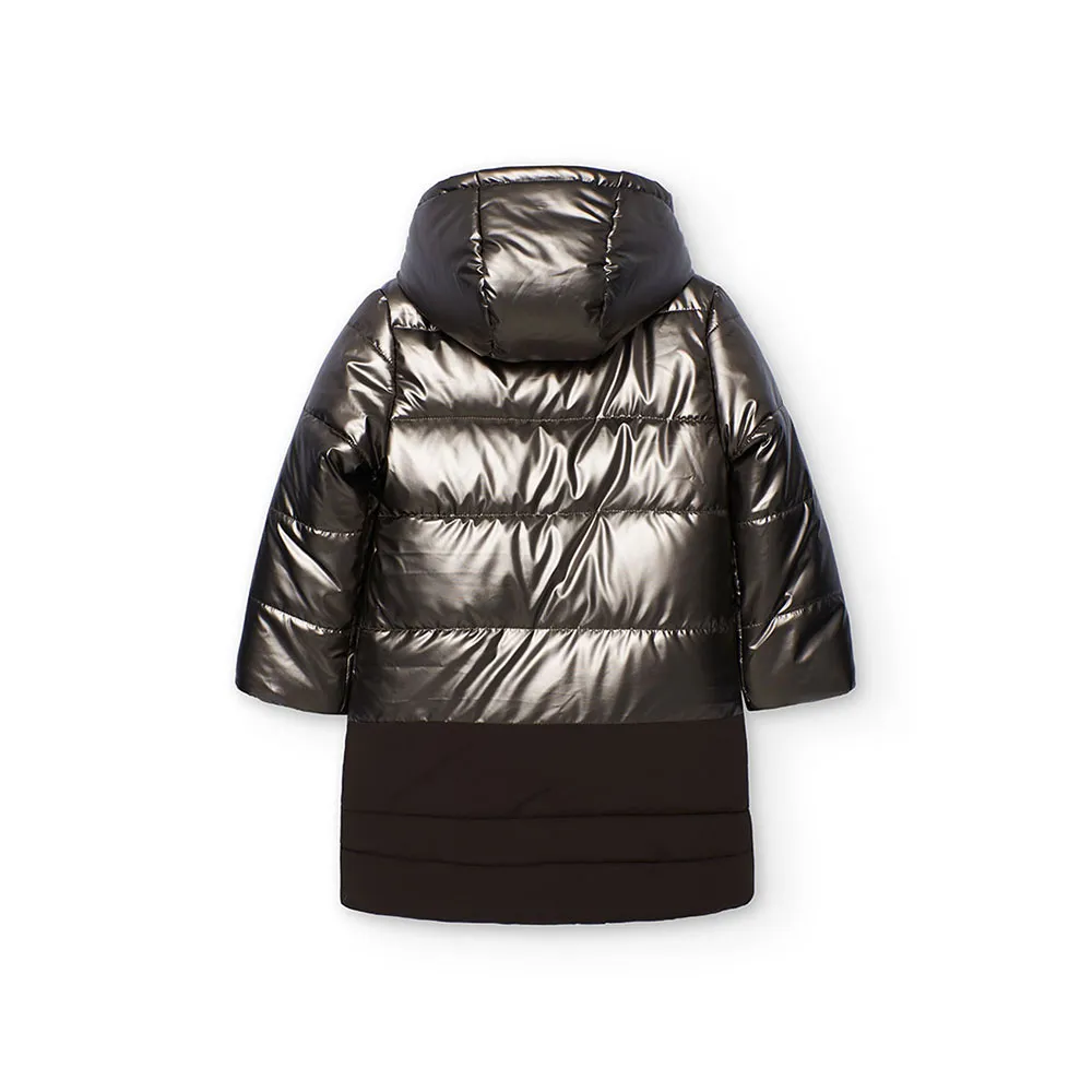 Коричневая парка из технической ткани для девочек, идеально подходящая для стильной и комфортной встречи зимы.