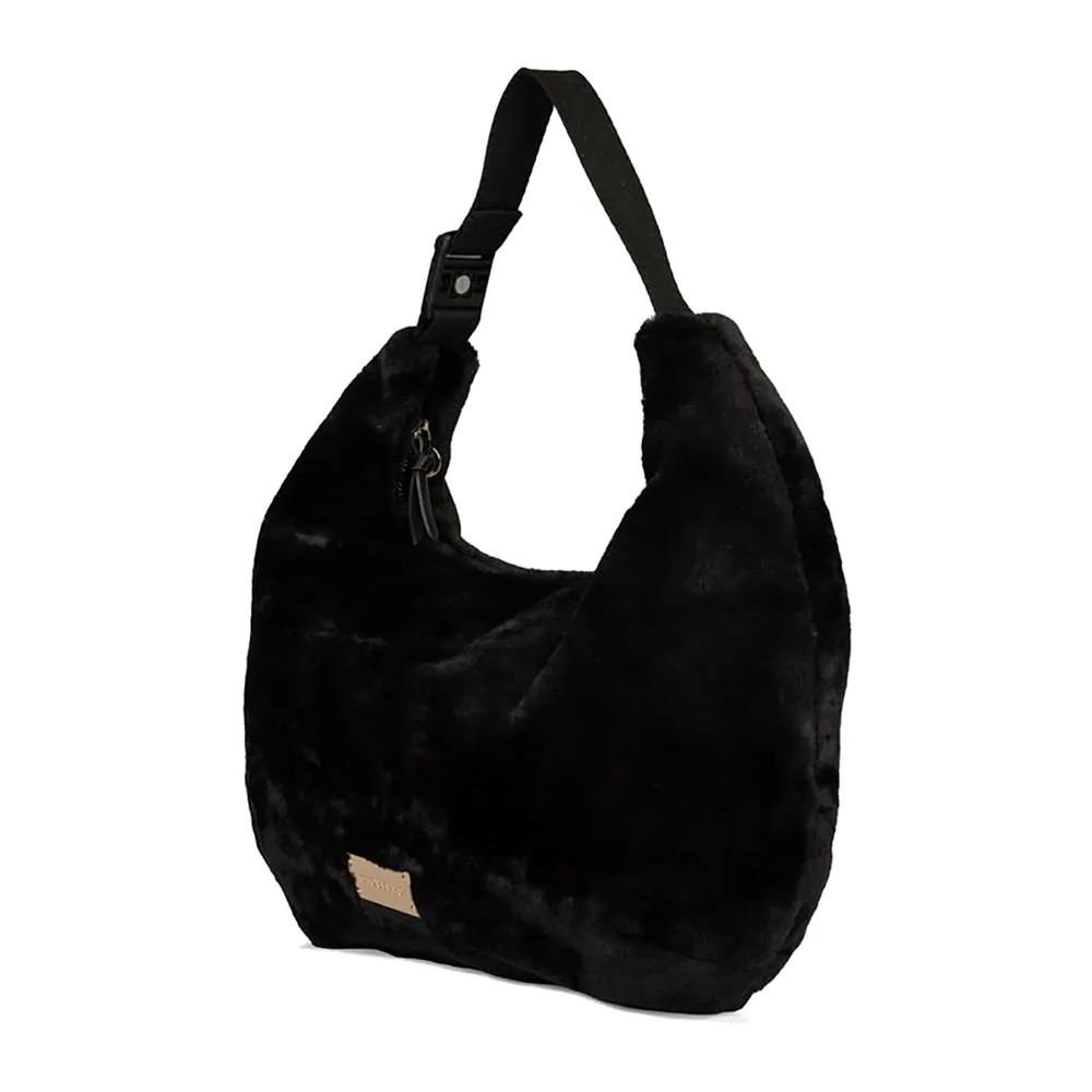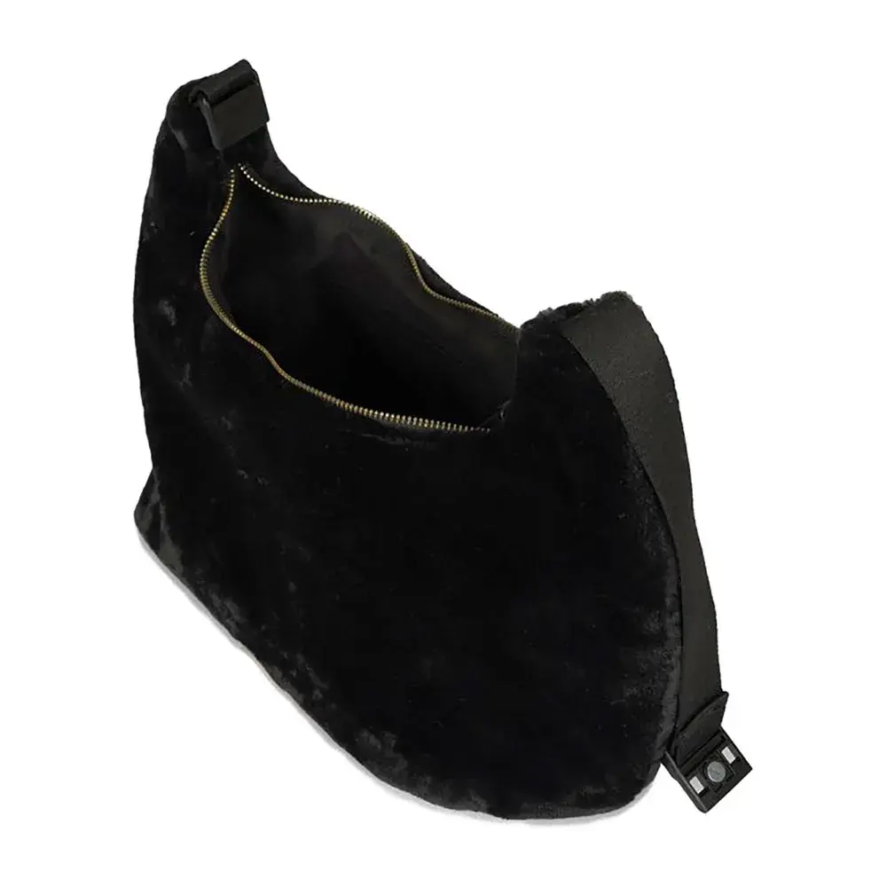 Легкая и придаст вашему образу нотку уюта! Черная меховая сумка через плечо с застежкой на молнию и коротким регулируемым плечевым ремнем.