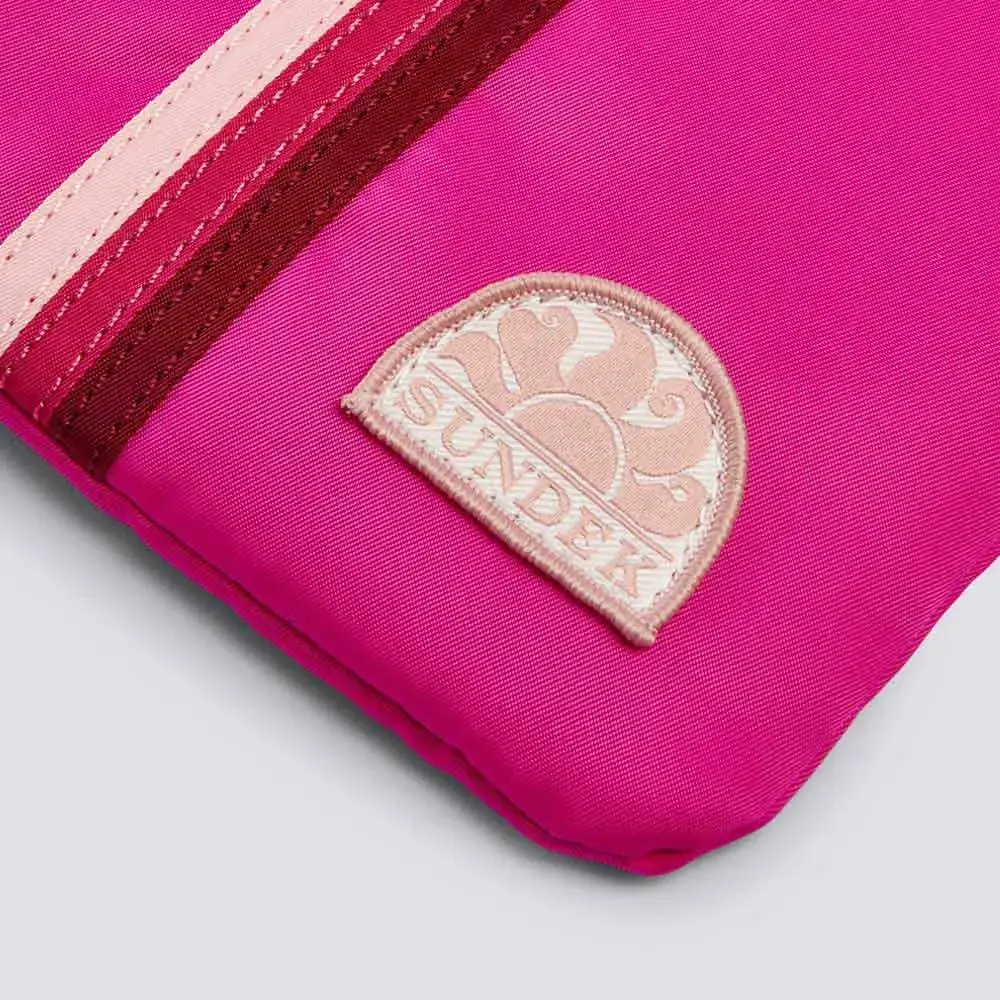 Легкая пляжная сумка-клатч на подкладке с культовой трехцветной лентой для хранения и защиты предметов первой необходимости, которые вы предпочитаете держать под рукой.