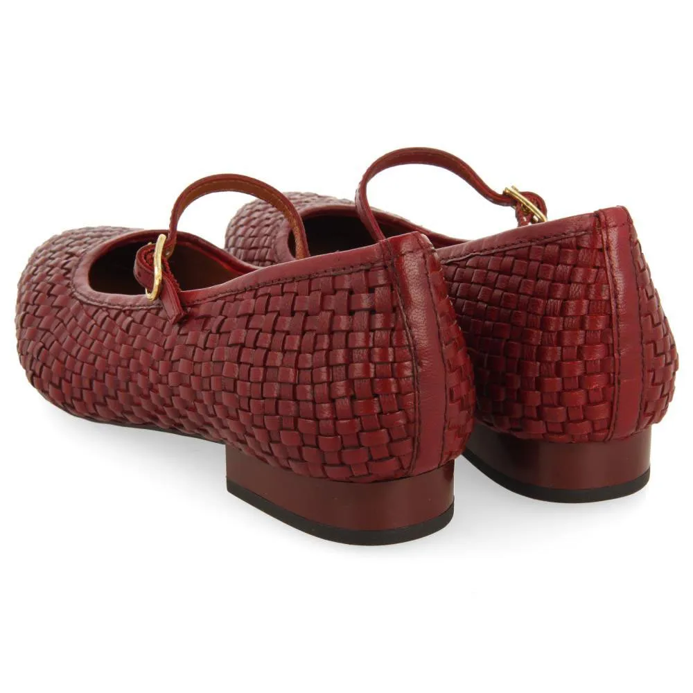 Бордовые балетки в стиле Мэри Джейн с ручной тесьмой.