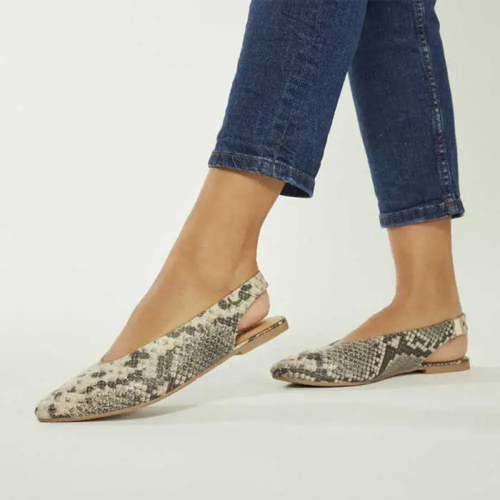 Металлический оттенок, который не оставит вас равнодушными! :) Кожаные балетки-босоножки со змеиным принтом и эластичной спинкой.