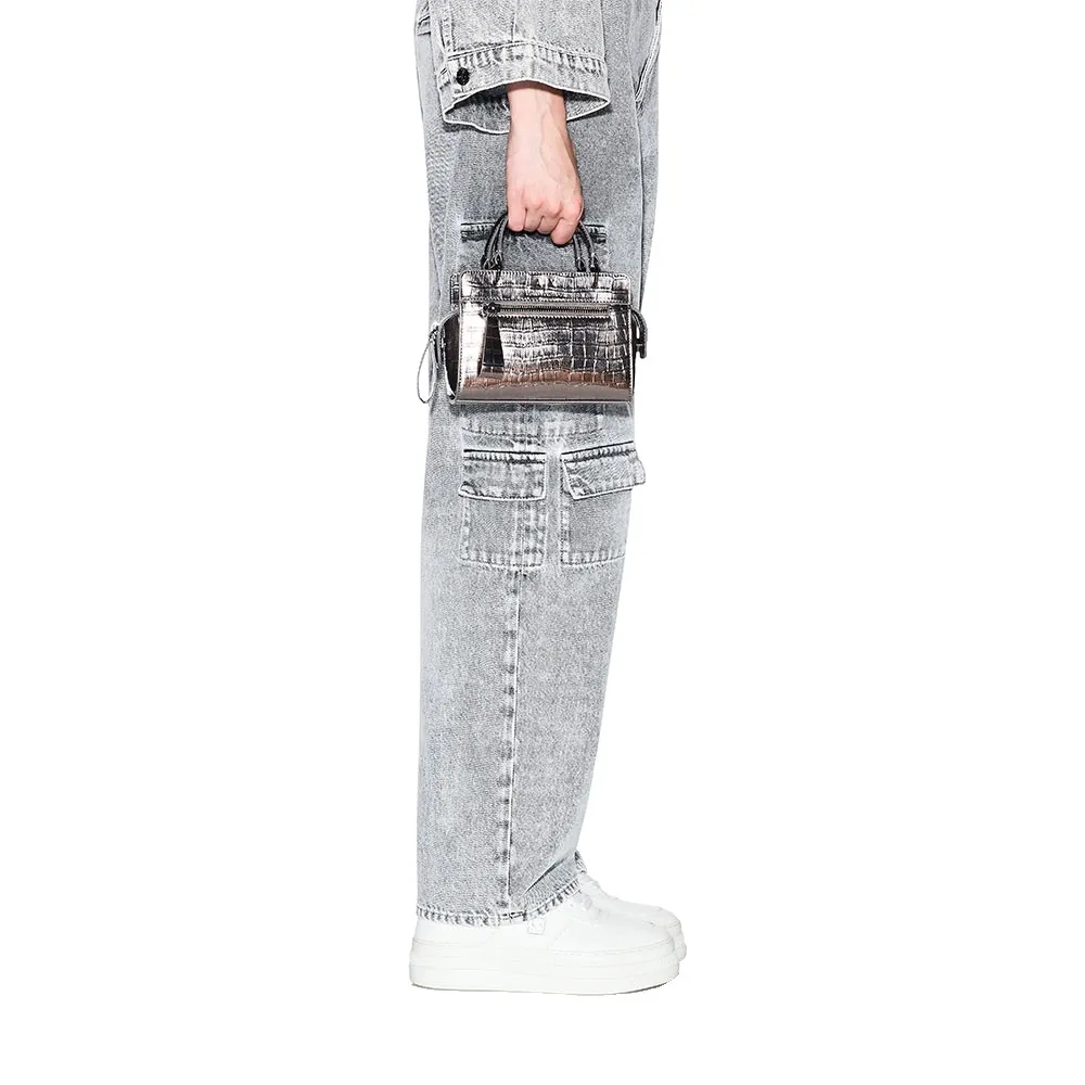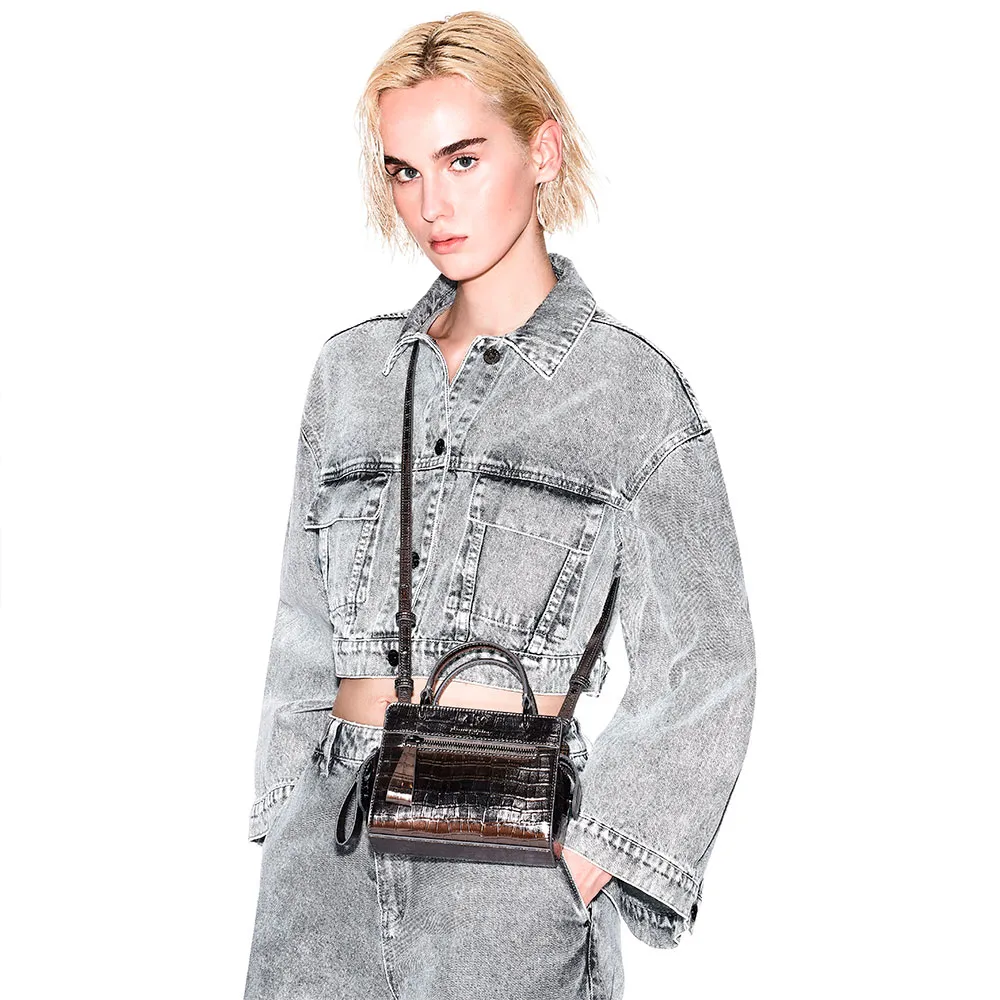 Мини-сумка, полностью изготовленная из прочной, исключительно мягкой искусственной кожи с эффектом козьей шкуры.