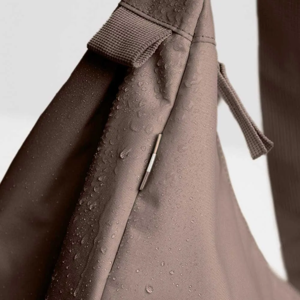 - Основная ткань из переработанного пластика Ocean Impact, подкладка из переработанного ПЭТ, пряжки С помпонами, лямки из переработанного ПЭТ, молния из переработанного нейлона