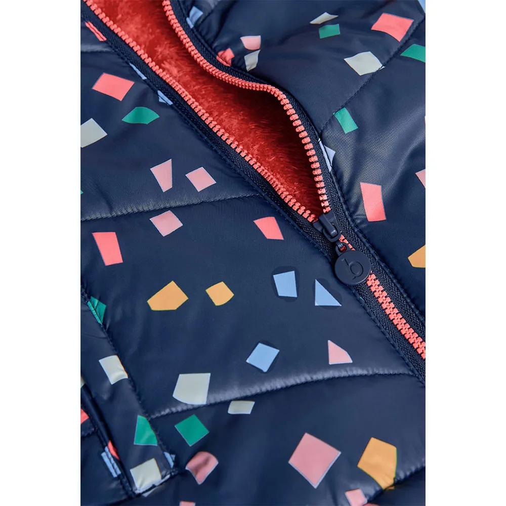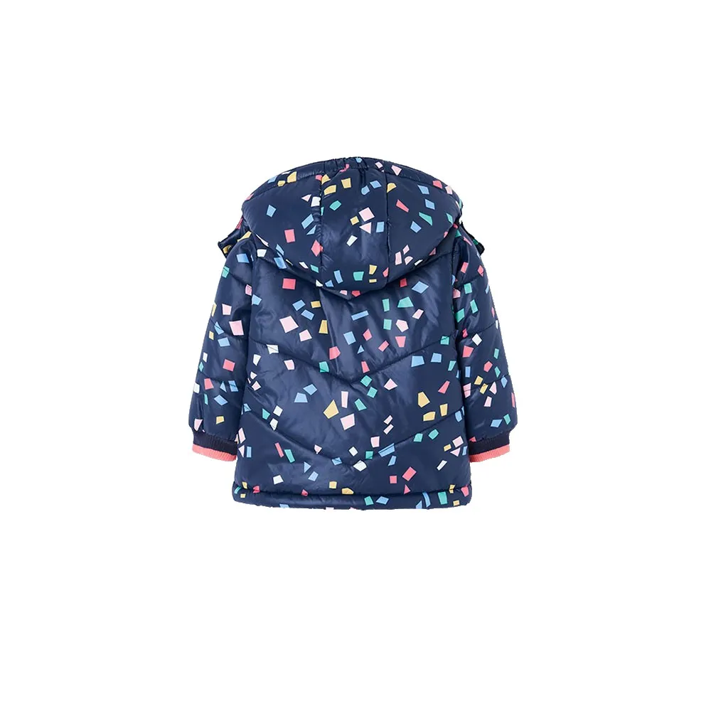 Парка из технической ткани с разноцветным геометрическим рисунком для девочек, идеально подходящая для зимнего сезона, обеспечивающая тепло и современный жизнерадостный стиль.