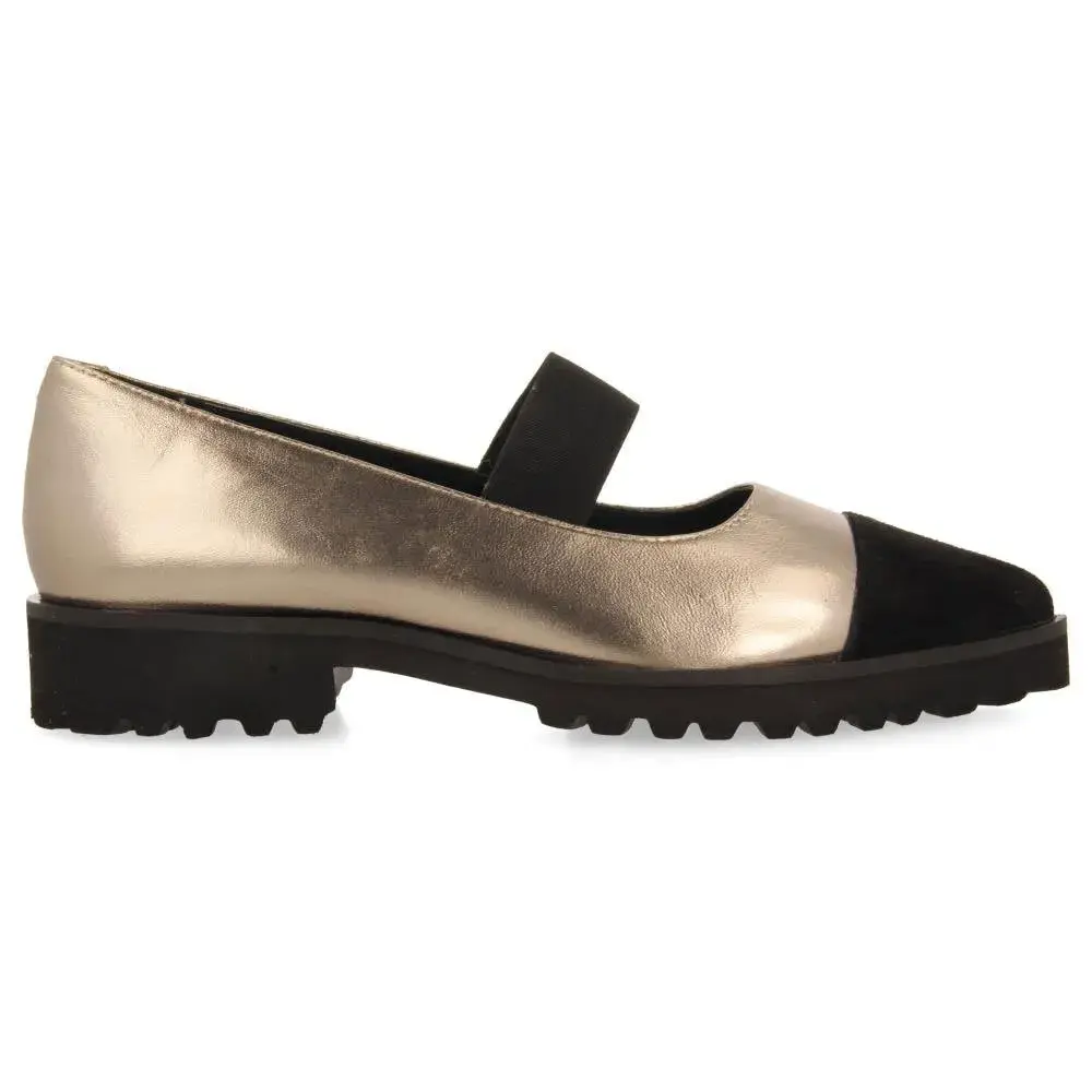 Балетки бронзового цвета на эластичной подошве.