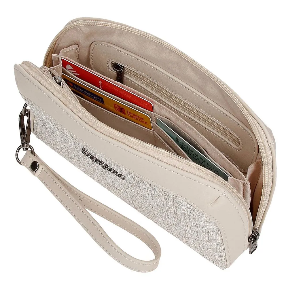 Внутреннее отделение с четырьмя отделениями, кошельком, шестью слотами для карт и карманом на молнии.