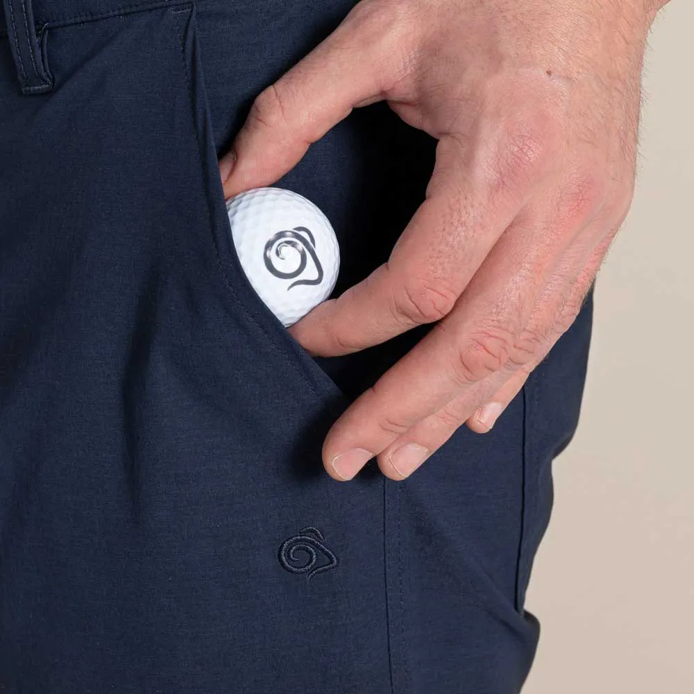 Технологичные брюки для гольфа с выигрышной формулой. Эластичная ткань NosiLife обеспечивает защиту от насекомых, устраняет запахи и обеспечивает эффективную защиту от ультрафиолета. Облегающий крой обеспечивает полную свободу движений. Регулируемая талия для удобства, лента на пятке для долговечности и 5 удобных карманов.