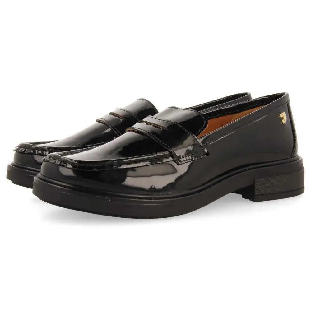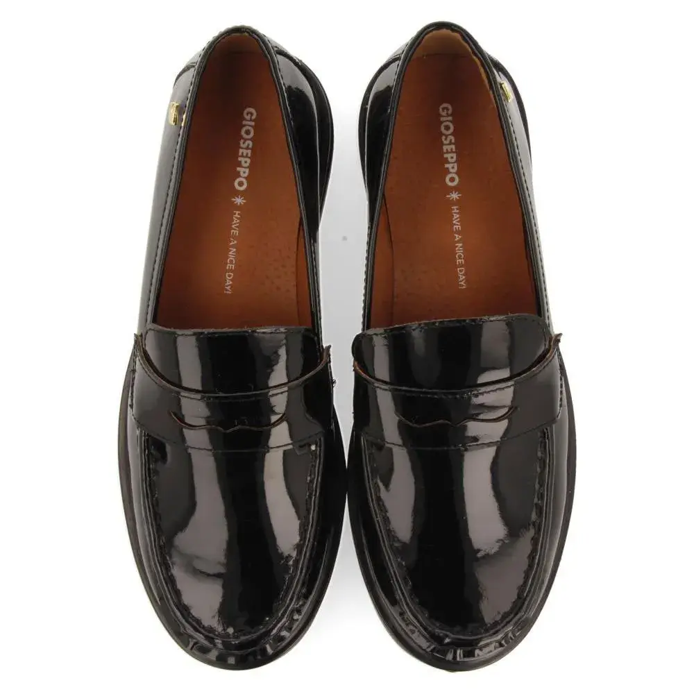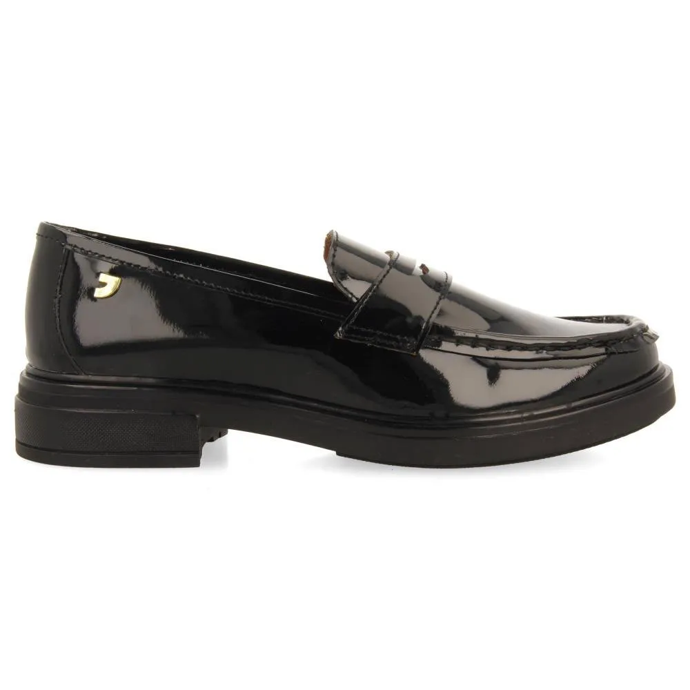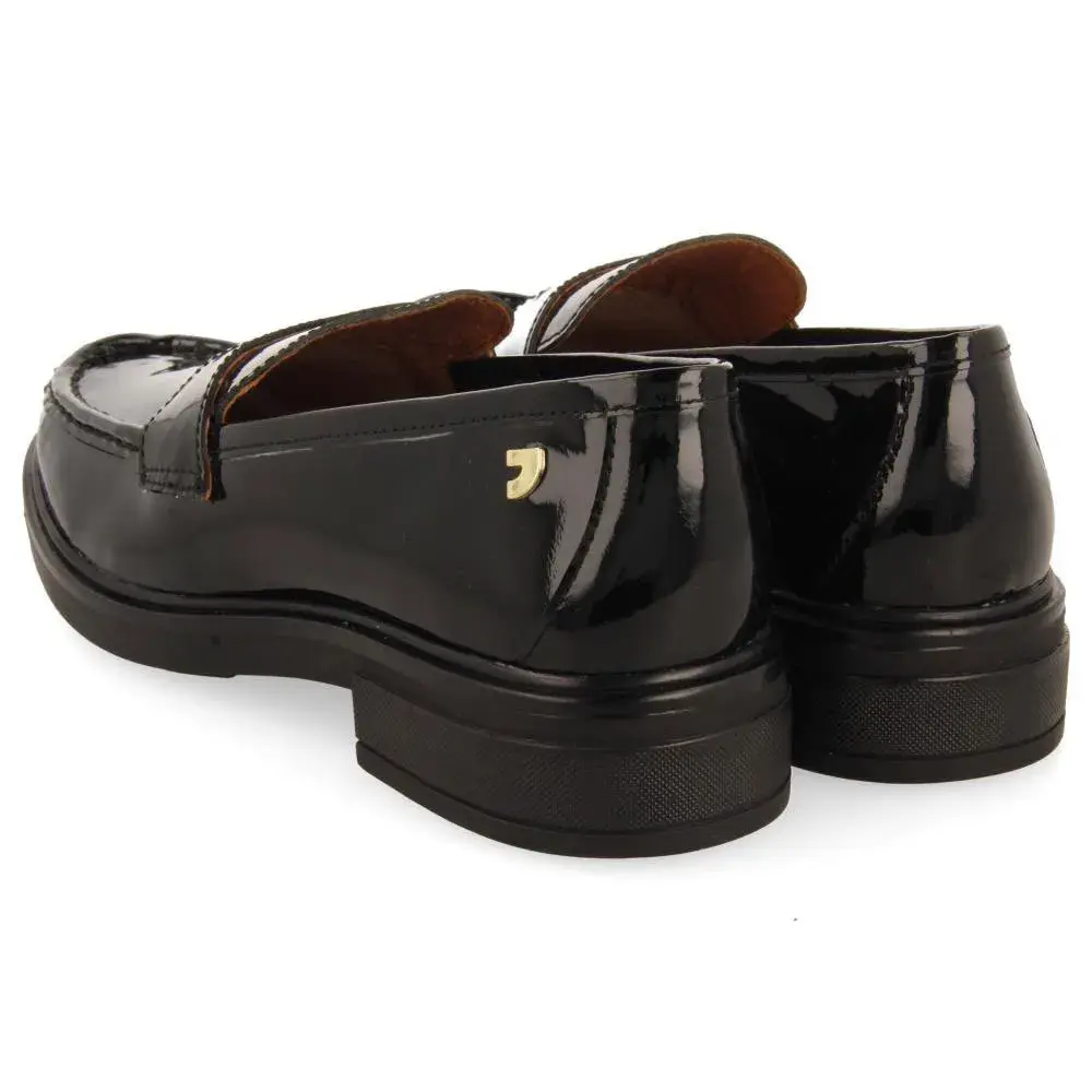 Черные лоферы из лакированной кожи с отделкой в виде пенни.