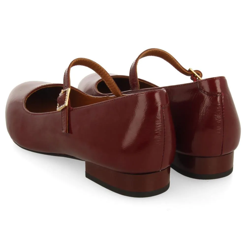 Бордовые балетки в стиле Мэри Джейн из лакированной кожи.