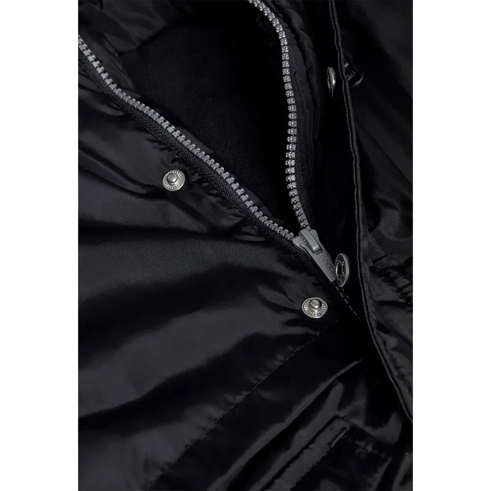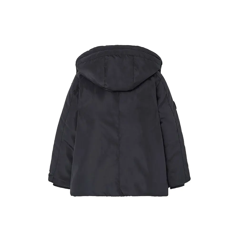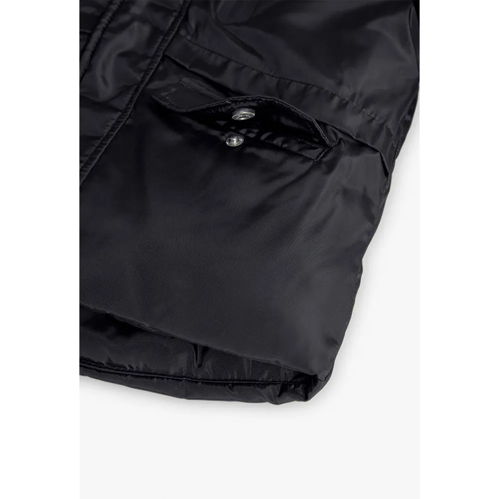 Черная парка из технической ткани для мальчиков предлагает идеальное сочетание функциональности и стиля, специально разработанная для защиты от холода и зимнего дождя.