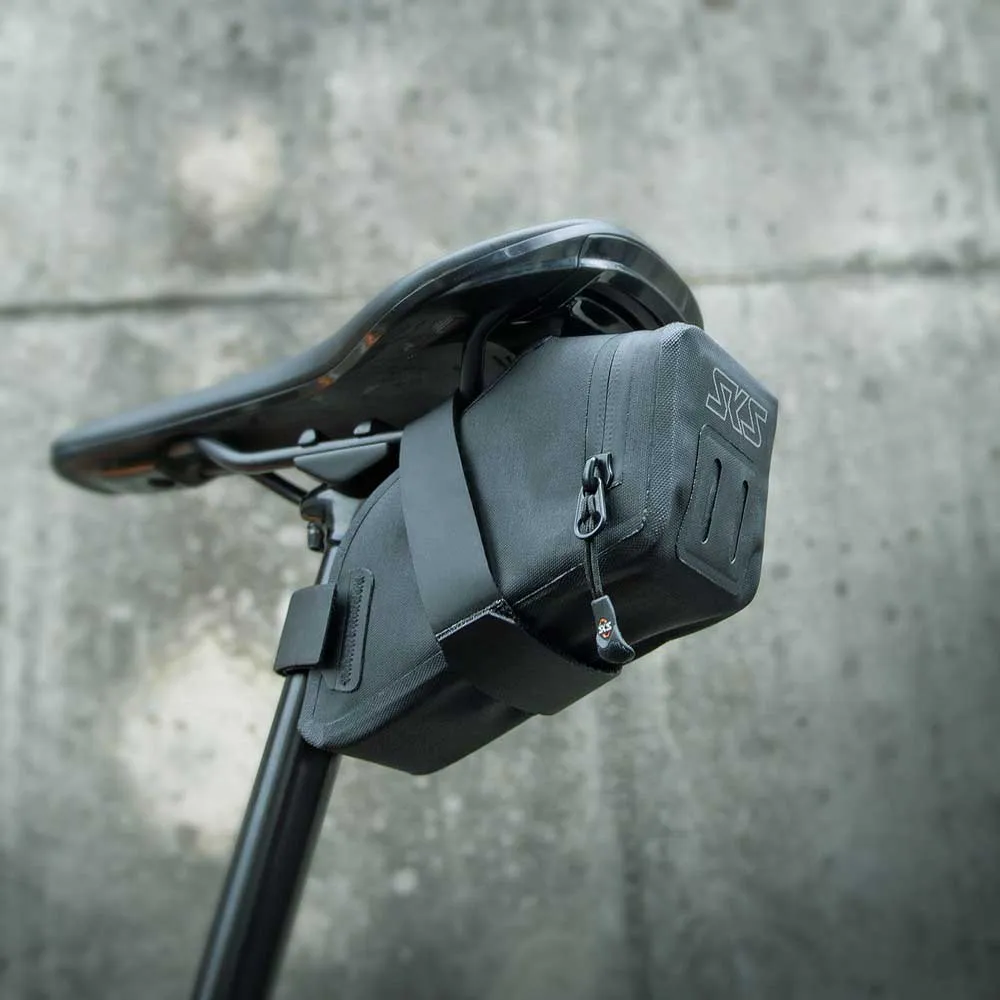 - Два внутренних сетчатых кармана для ключей или денег. Сумка-седло SKS легко крепится под седлом с помощью нескользящих застежек-липучек. Застежки-липучки можно укоротить и заменить по отдельности. На задней стороне сумки расположено крепление для заднего фонаря, а также светоотражающий логотип SKS для лучшей видимости в сумерках.