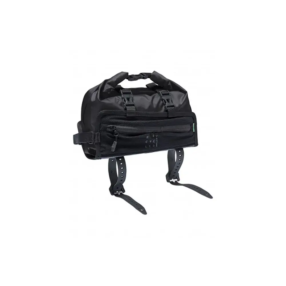 Водонепроницаемая корзина застегивается на молнию, а при загрузке до 3 литров верхнюю часть можно свернуть и надежно закрепить на точке крепления с помощью боковых пряжек.