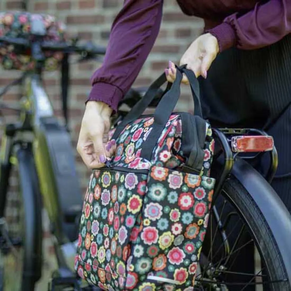 Задняя велосумка KLICKFIX Reisenthel вместительная GT, 12 л, happy flowers, Vario Hook E.