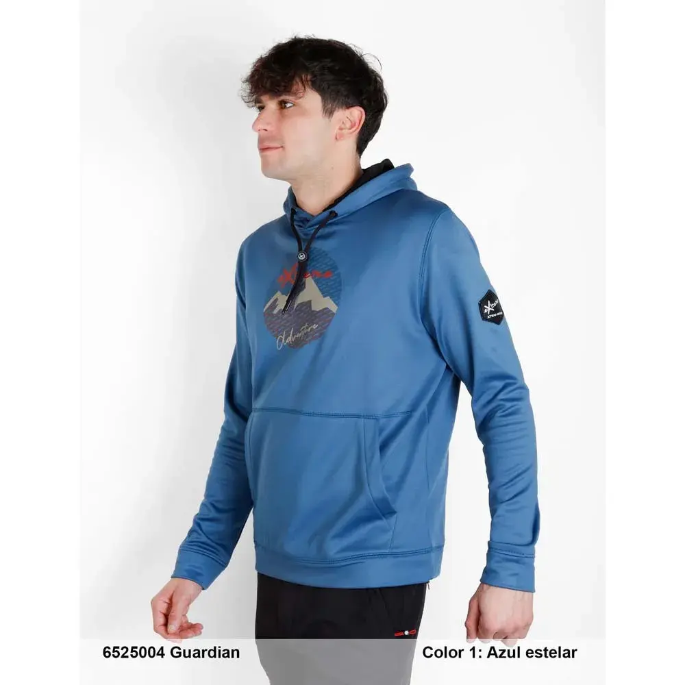 Капюшон с черной сетчатой подкладкой и регулируемым шнурком, карман-кенгуру, усиленные швы, трафаретная печать на груди, вышитая этикетка на рукаве.