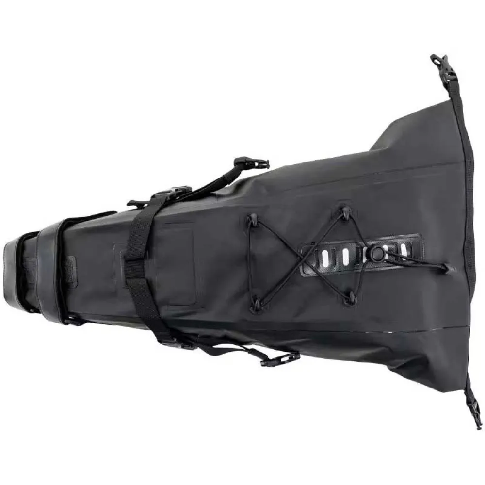 Крепление без инструментов к перьям седла, а также к подседельному штырю или подседельной трубе с помощью нецарапающихся липучек, нескользящее покрытие в точках соприкосновения предотвращает царапины на подседельном штыре и соскальзывание сумки даже на бездорожье, конструкция разработана для максимальной устойчивости во время езды: гибкая застежка-молния и компрессионные ремни минимизируют соскальзывание багажа.