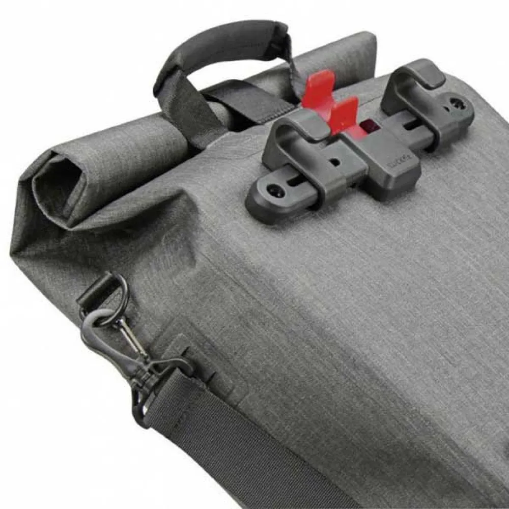 Премиальная водонепроницаемая сумка-корзина с застежкой-роллером и высококачественными деталями. В просторном основном отделении с мягким дном и задней стенкой также есть внутренний карман. Снаружи дополнительное отделение на молнии обеспечивает дополнительное пространство для хранения, а мягкая ручка и съемный плечевой ремень обеспечивают комфорт при переноске. Для лучшей видимости в темноте сумка оснащена светоотражателями и двумя держателями для фонарей. Сумка оснащена регулируемой направляющей, подходящей для различных моделей багажников. Нижняя защелка предотвращает боковое раскачивание сумки.