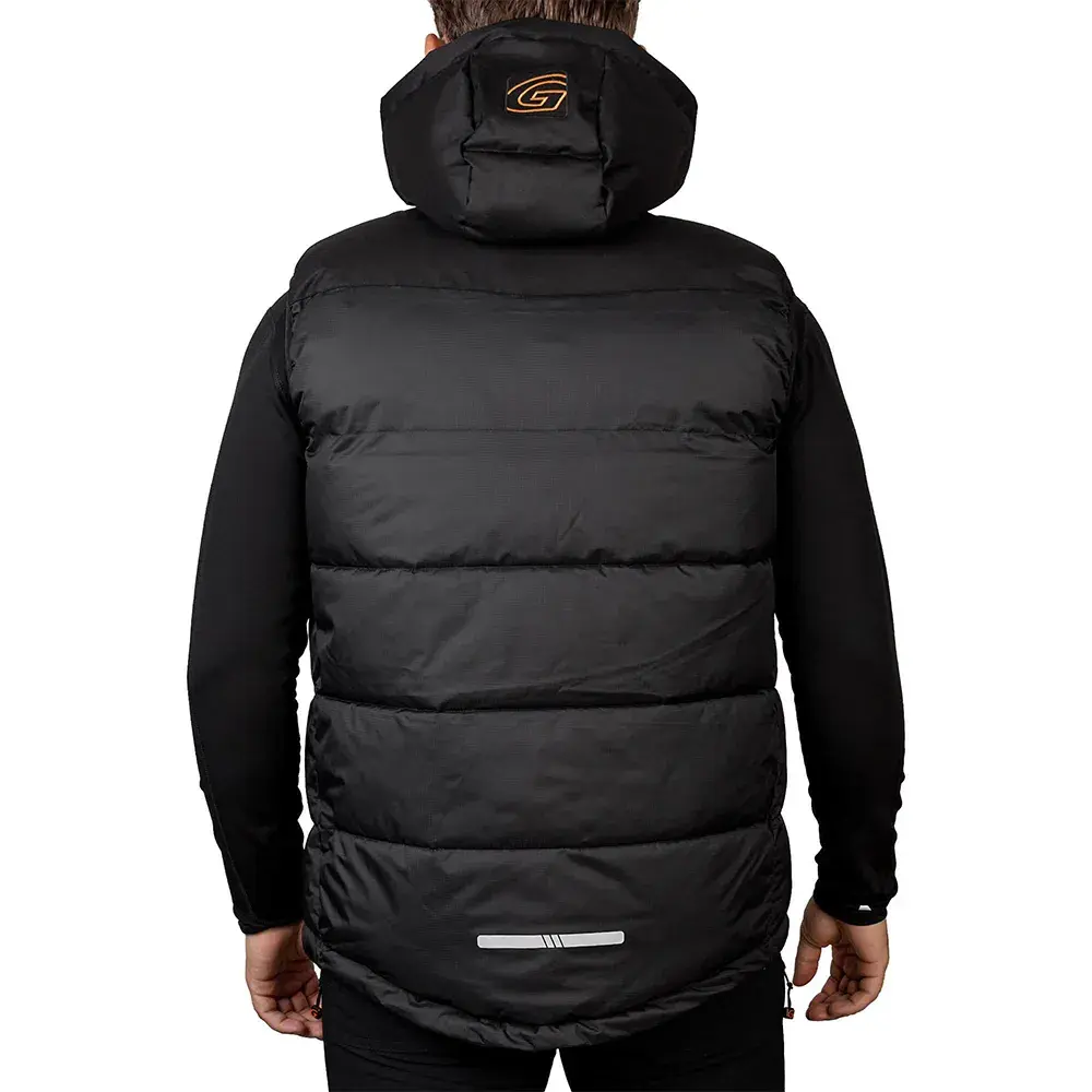 Жилет остается теплым, легким и быстросохнущим, что делает его идеальным для осенне-зимнего сезона.