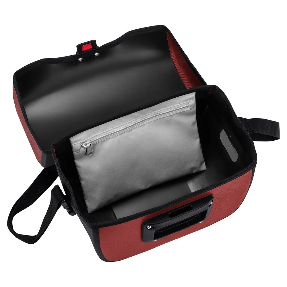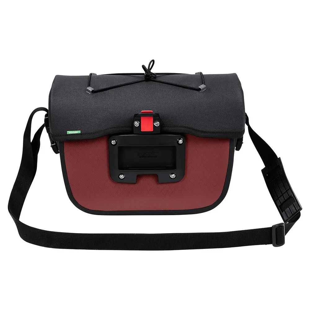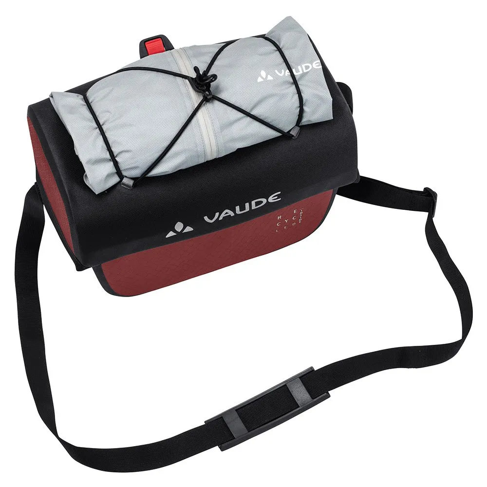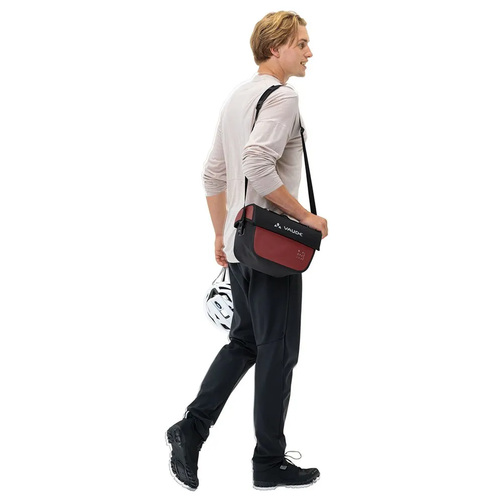 Чрезвычайно прочная сумка на руль изготовлена с использованием водонепроницаемых швов, сваренных высокочастотной сваркой, и смеси 100% переработанного полиэстера и 100% переработанного полиамида на заводе VAUDE в Германии.