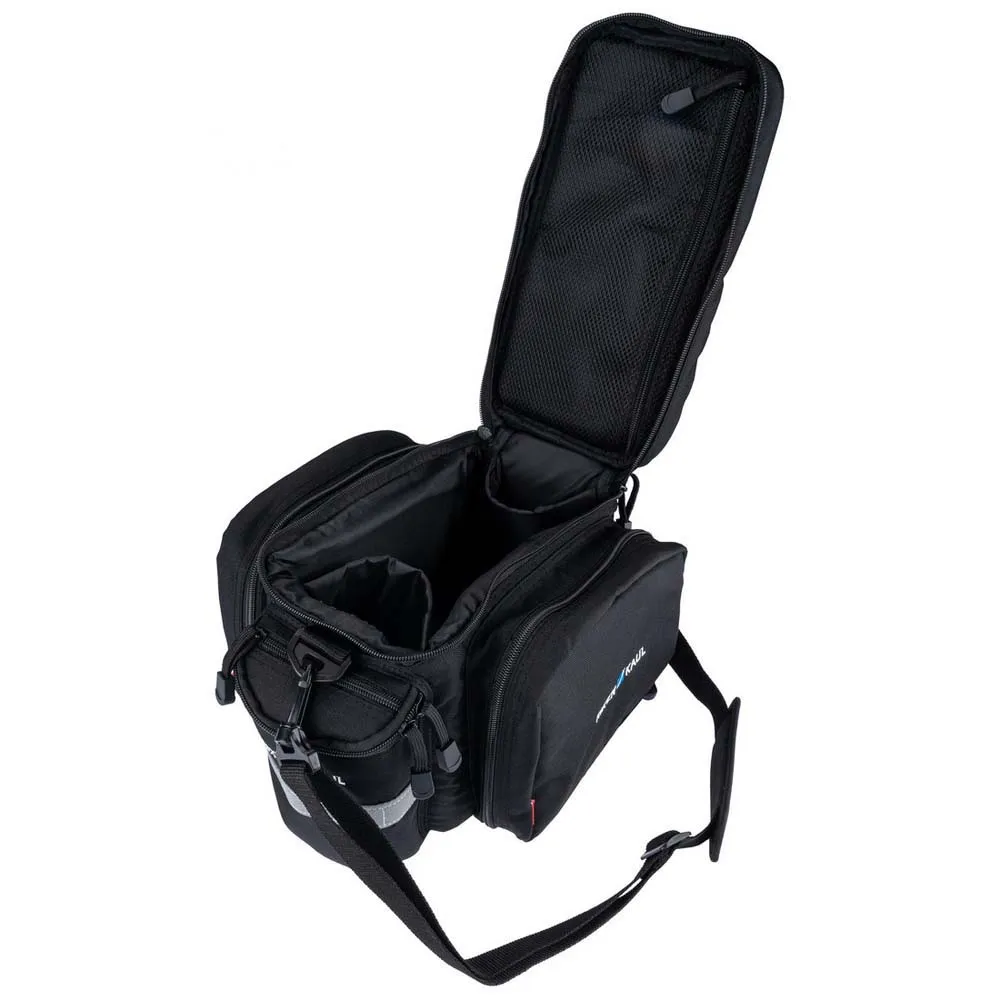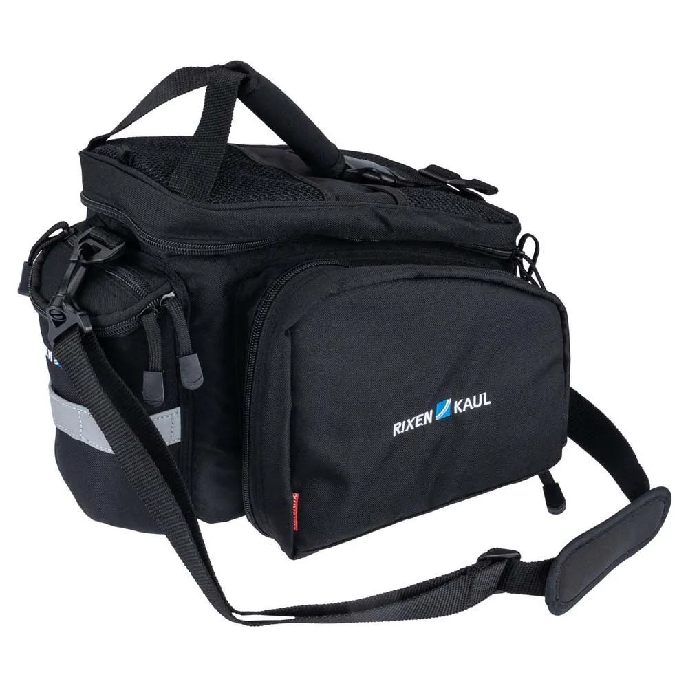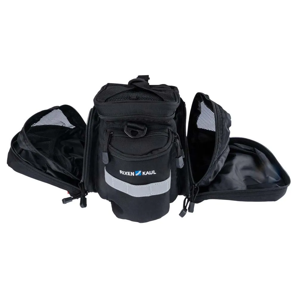 Сумка-багажник Rixen & Kaul Rackpack2 Plus, ручка, плечевой ремень, чехол от дождя, светоотражатель, кронштейн для фонаря, внешнее отделение, раскладывающиеся боковые карманы, отделение для бутылки, регулируемый объем.