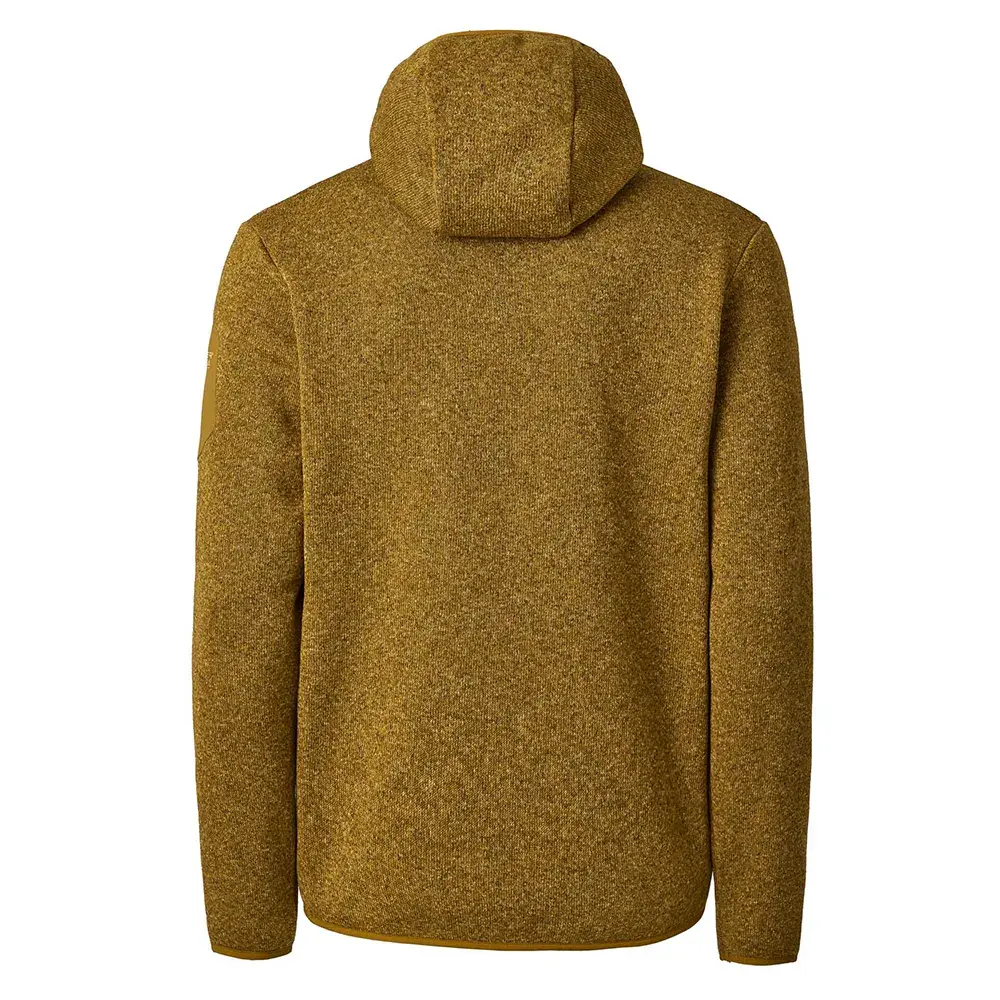 Флисовая куртка с капюшоном и трикотажным эффектом, изготовленная из переработанной ткани Warmshell в сотрудничестве с Kingwhale и ее технологией с низким воздействием на окружающую среду, которая использует на 15% меньше красителей, на 22% меньше электроэнергии для нагрева и охлаждения, на 50% меньше тепловой энергии для создания пара и на 60% меньше воды, чем при обычном окрашивании.