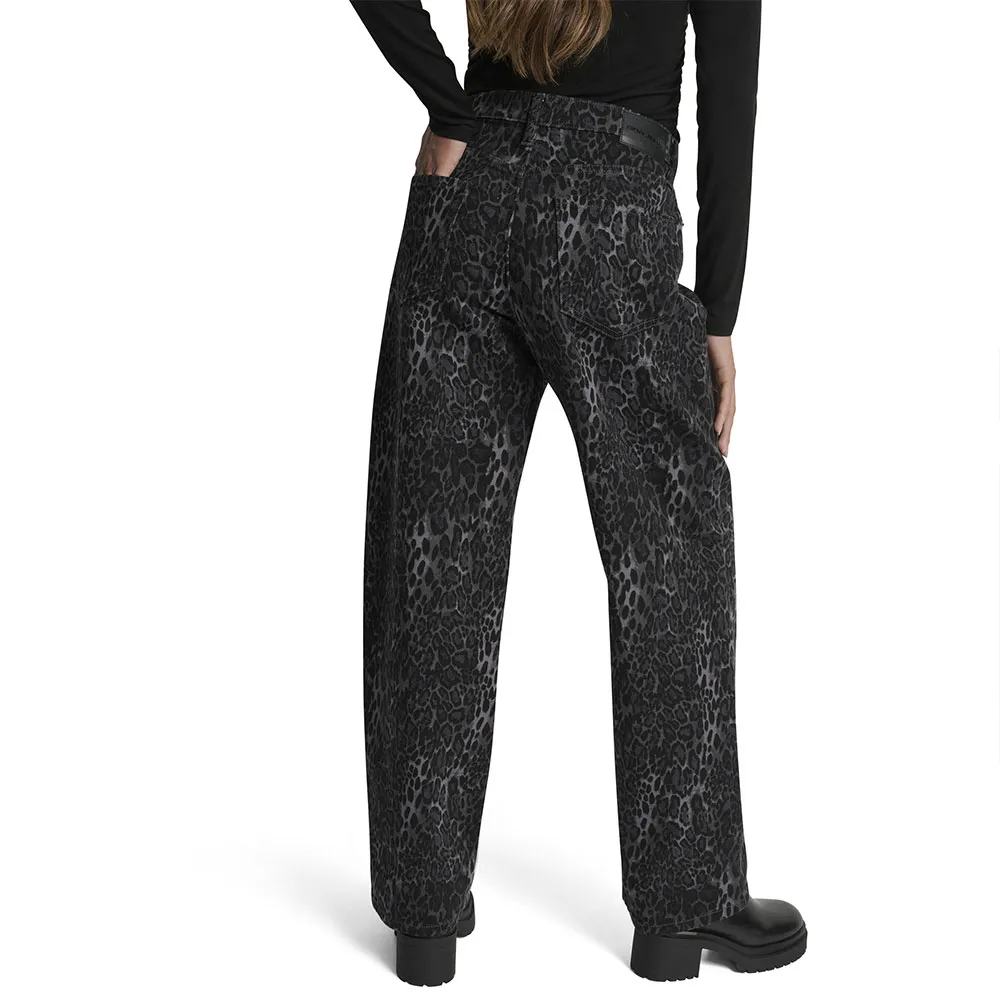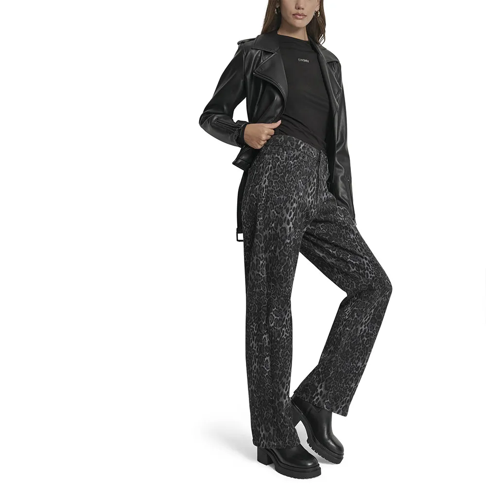 Брюки средней посадки с животным принтом, открытые карманы спереди и сзади.