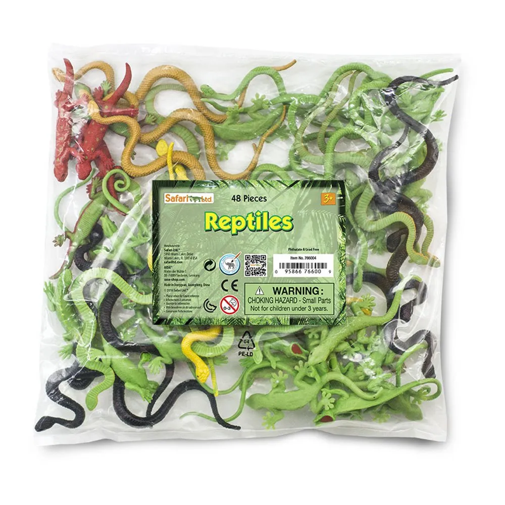 - Характеристики: Горстка друзей-рептилий - В этой забавной объемной сумке содержатся пригоршни 8 различных игривых рептилий, включая игуан с длинными хвостами, хамелеонов с изогнутыми хвостами, ящериц с красными пятнами, зеленых гекконов, а также желтых, зеленых, коричневых и черных змей.