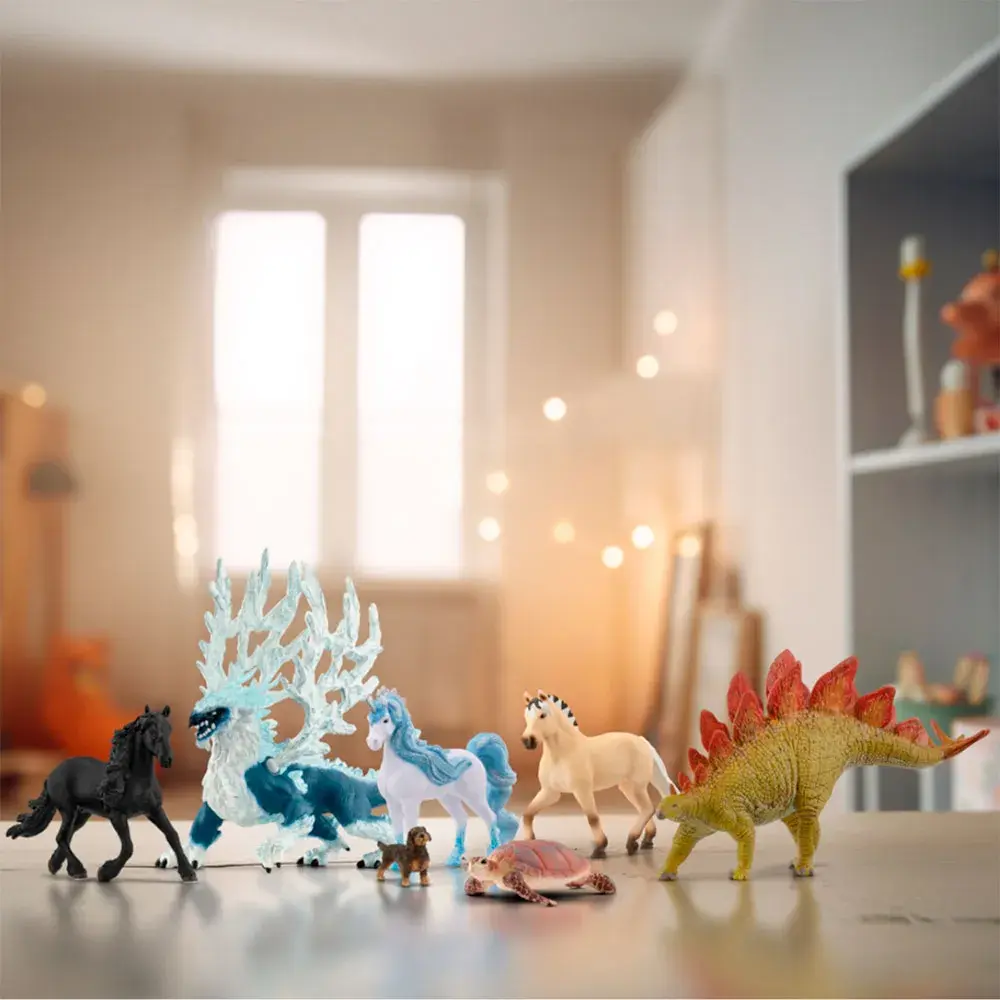 С ледяных вершин Ледяного Мира появляется новая сила, претендующая на господство над королевствами! Прибыл ледяной дракон SCHLEICH Eldrador Creatures 70790, великолепный и устрашающий зверь, готовый погрузить вашу игровую комнату в эпический ледниковый период. С его пронзительными голубыми глазами, мерцающей чешуей и осанкой, вызывающей уважение, этот дракон является бесспорным правителем всего замороженного. Он парит в небесах Эльдрадора, его ледяное дыхание способно остановить любого врага на полпути, что делает его грозным противником для созданий Миров Лавы, Камня и Джунглей.