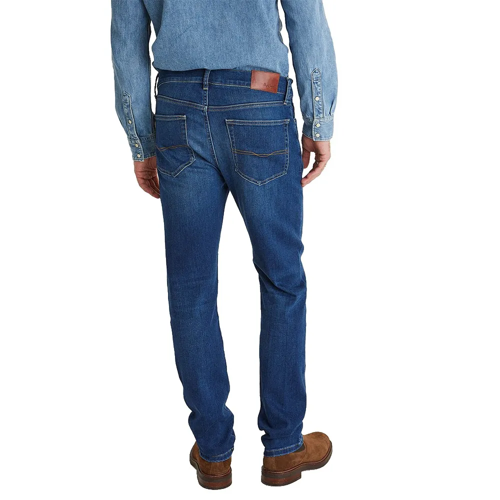 Крой из гладкого модала, качество Powerflex и мягкий эффект ношеного культового цвета Pepe blue indigo.