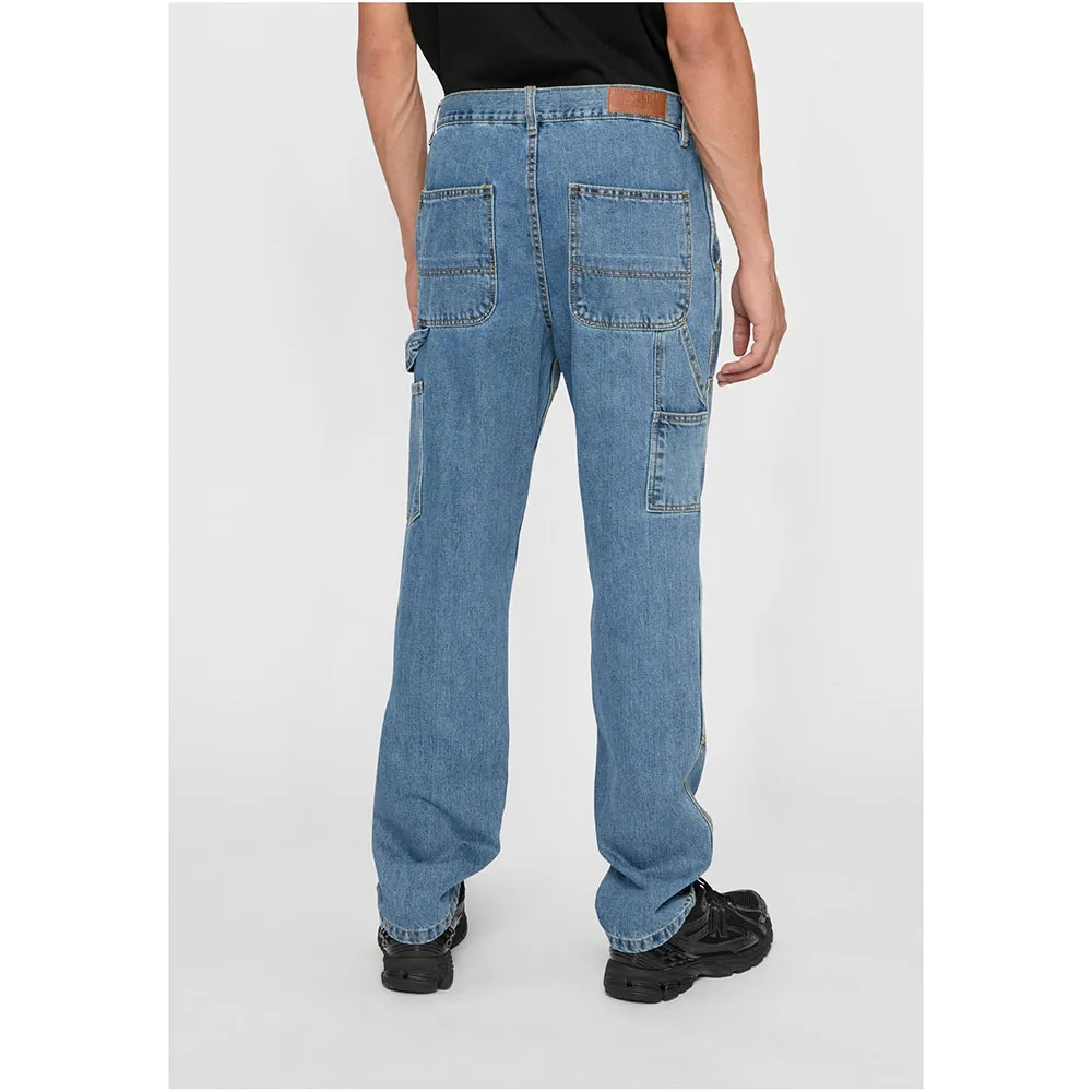 Мужские джинсы удачно дополнены длинной двухслойной вставкой выше колен. Прочный внешний вид подчеркивается боковой петлей, которая выполняет роль кармана для молотка. У мужских джинсов также есть боковые карманы и накладные карманы сзади. Они изготовлены из прочного хлопкового денима и имеют правильную посадку.
