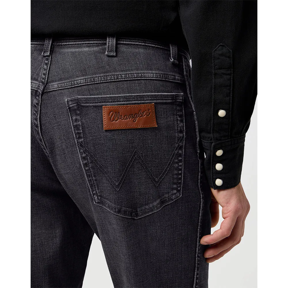 Модель с 5 карманами, 7 шлевками для ремня, строчкой "шов" и нашивкой из черной кожи Wrangler на заднем кармане.