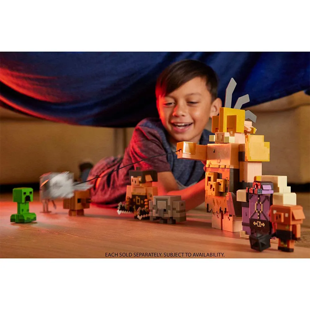 - Дизайн персонажа и детали личности остаются верными уникальному, пиксельному миру Minecraft Legends, идеально подходящему для коллекционирования!