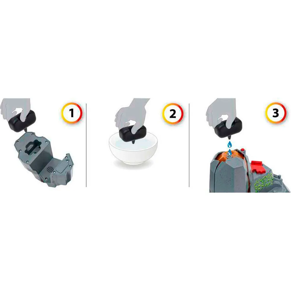 Испытайте острые ощущения, когда вулкан оживает! Нажатием кнопки или когда поезд проезжает по своим темным и таинственным туннелям, вулкан активизируется, испуская впечатляющие световые и грохочущие звуковые эффекты. С изумлением наблюдайте, как сверху поднимается безопасный, прохладный водяной пар, создавая потрясающе реалистичный эффект извержения. Этот мультисенсорный опыт является невероятным центром бесчисленных часов творческой игры, обучая причинно-следственным связям самым захватывающим из возможных способов. Набор включает в себя несколько уровней трассы, что позволяет создавать динамические макеты, которые ведут вверх, вокруг могучего вулкана и через него.