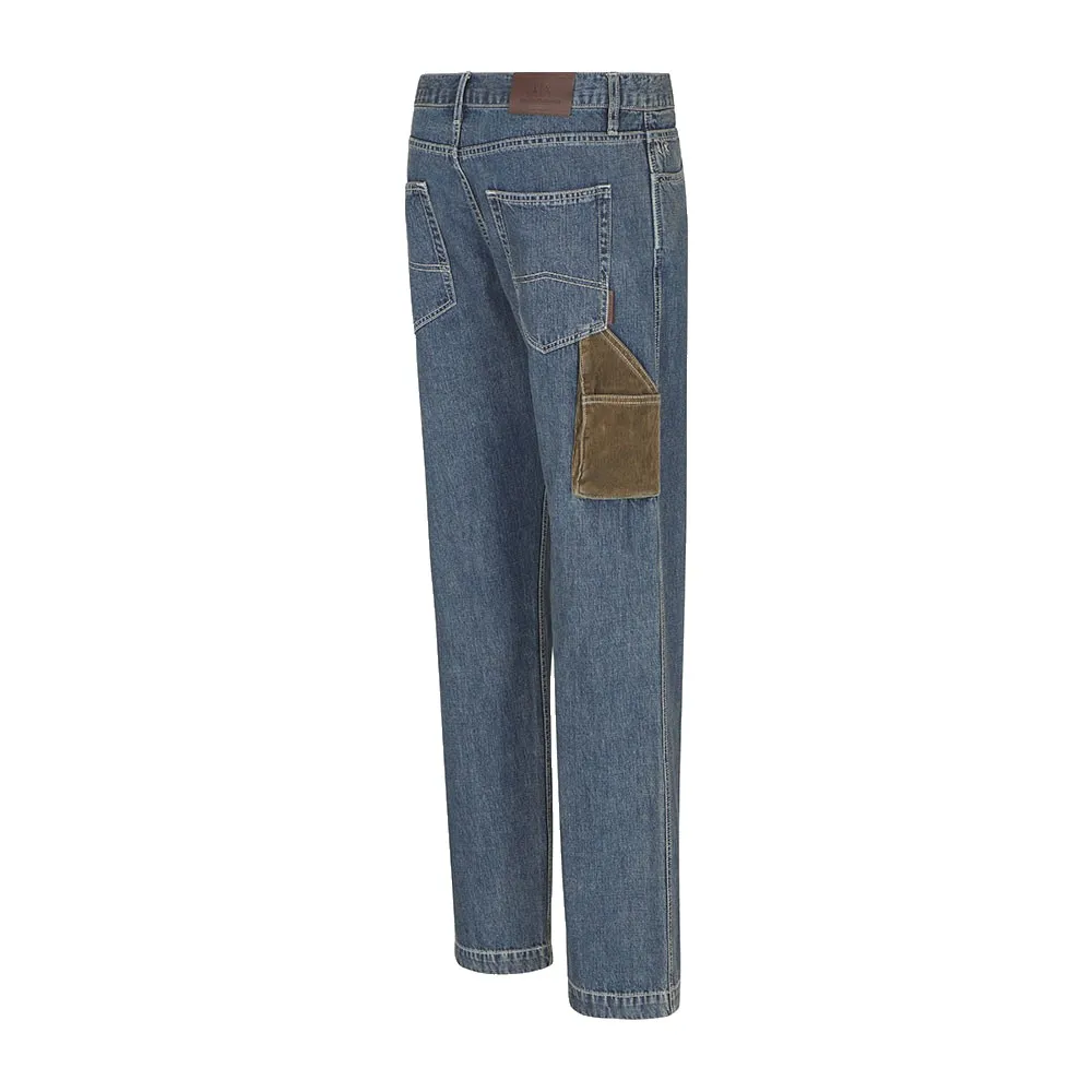 Отличительные особенности отличают эту пару джинсов от обычных. Дизайн подчеркнут тщательно подобранными деталями из искусственной замши, добавляющими роскошный текстурный контраст и нотку изысканной прочности. Этот уникальный элемент демонстрирует приверженность бренда инновационному дизайну и вниманию к деталям. Образ дополнен изящной фурнитурой из оружейного металла, включая пуговицу и заклепки, что обеспечивает современную индустриальную отделку. Фирменная нашивка с коричневым логотипом на обороте гордо демонстрирует фирменный знак Armani Exchange, служащий тонким, но однозначным знаком качества и подлинности. Эти брюки являются свидетельством практичного дизайна, вобравшего в себя ДНК всемирно известного модного дома.