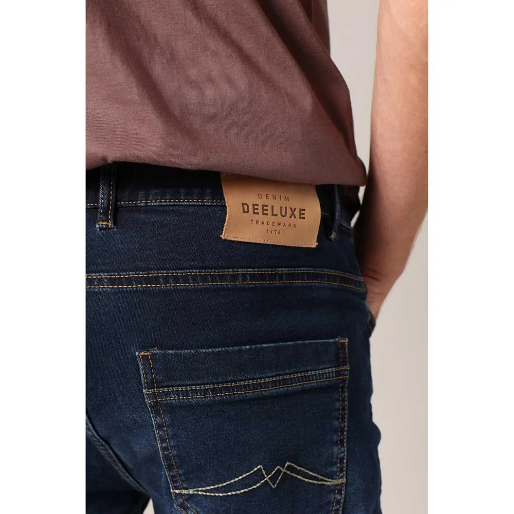 Эти джинсы обычного кроя воплощают идеальный баланс между комфортом и современным стилем. Сшитые из удобного эластичного денима, они имеют классический прямой крой, слегка приталены, но не обтягивают. Они имеют контрастную отстрочку по верху, пять карманов и оригинальную вышивку на задних карманах. Застежка на молнию и металлическую пуговицу. Нашивка из искусственной кожи с логотипом "deeluxe" на заднем поясе придает изделию аутентичный вид. Обязательный элемент мужского гардероба, идеально подходящий для создания повседневного образа в стиле casual-шик.