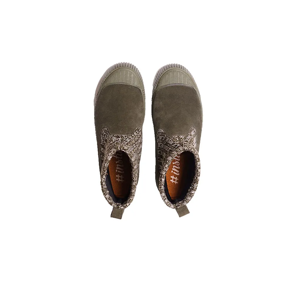 Эта женская обувь изготовлена из замши и ткани однотонных цветов.