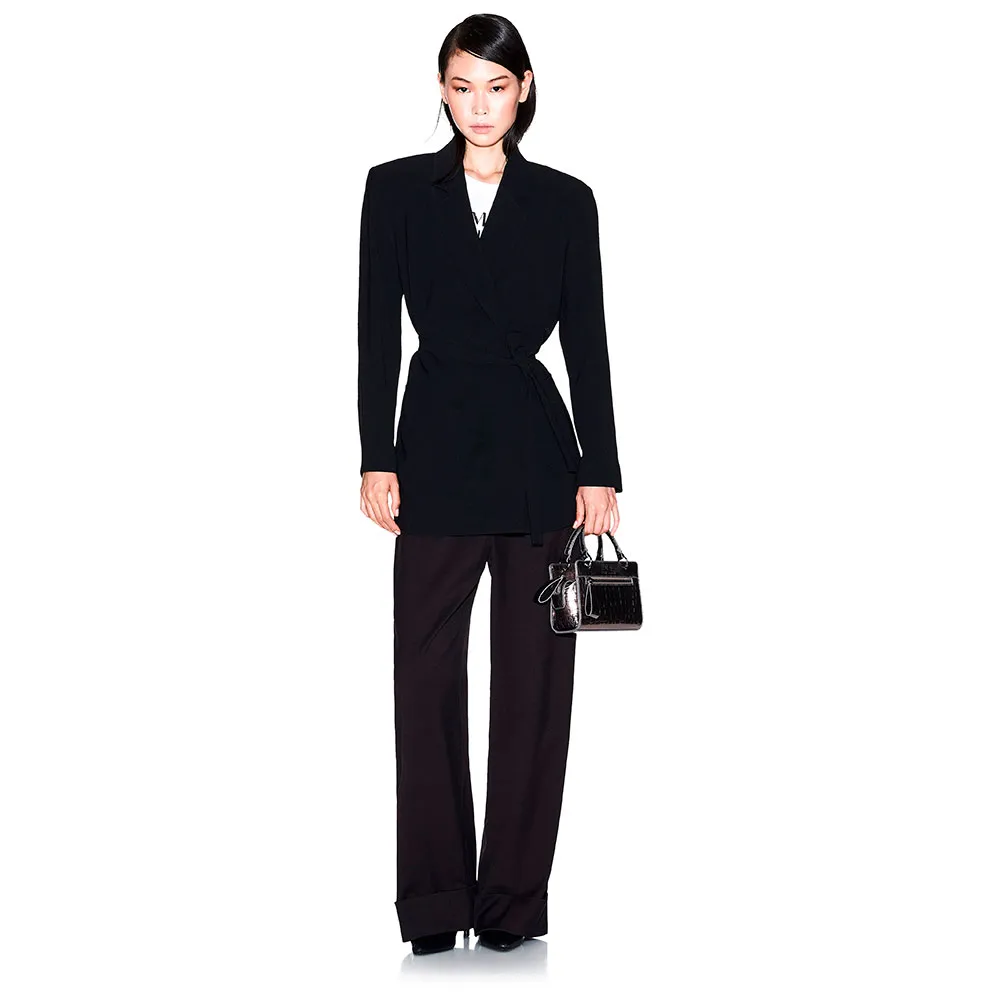 Блейзер полуприлегающего кроя с зеркальным отворотом.