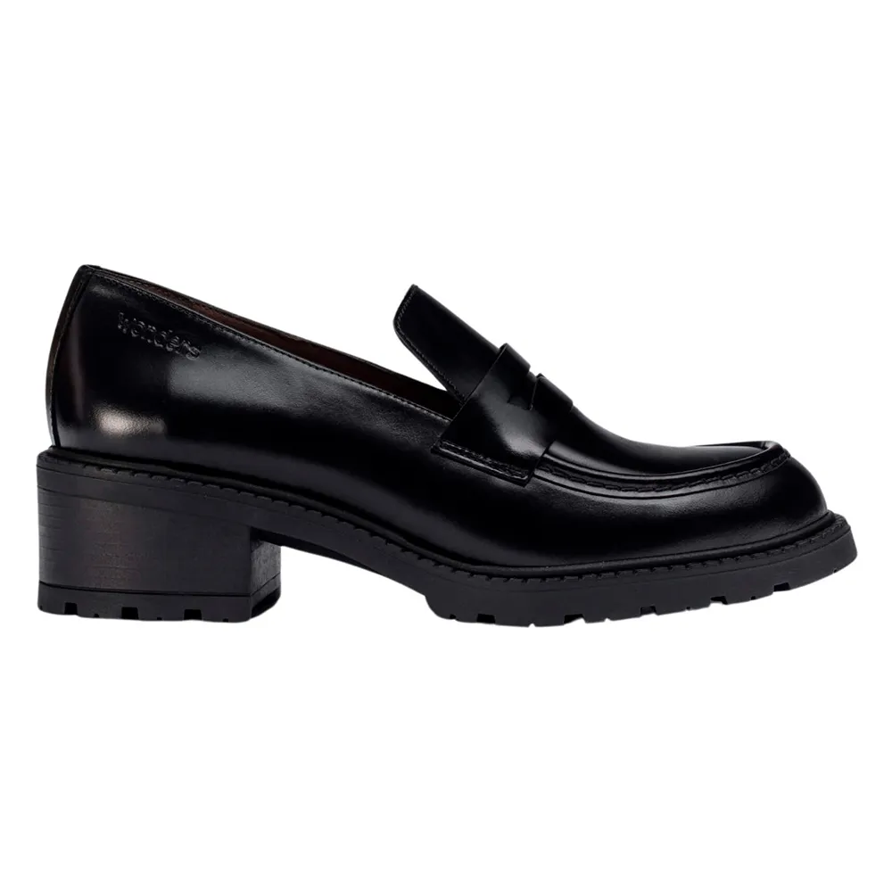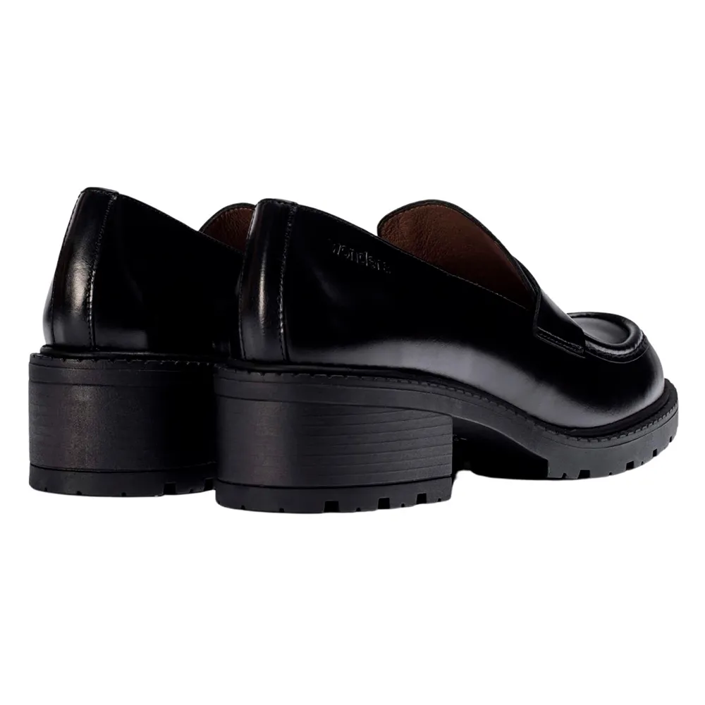 Женские лоферы из гладкой черной кожи с классическим дизайном penny loafer, создающие вневременной и элегантный образ.