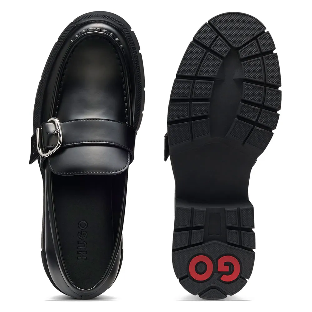 Новые лоферы Brom от HUGO Kris отличаются элегантным минималистичным силуэтом, который излучает современный шик. Их изысканный дизайн делает их идеальным выбором для самых разных случаев, направляетесь ли вы в офис, встречаетесь с друзьями за поздним завтраком или исследуете новый город. Удобная конструкция без застежки позволяет быстро и без усилий надевать их, что делает их практичным выбором для занятых женщин в дороге. Эти мокасины больше, чем просто стильные; Они разработаны с учетом вашего комфорта. Почувствуйте превосходную посадку благодаря тщательно продуманной конструкции и высококачественным синтетическим материалам.