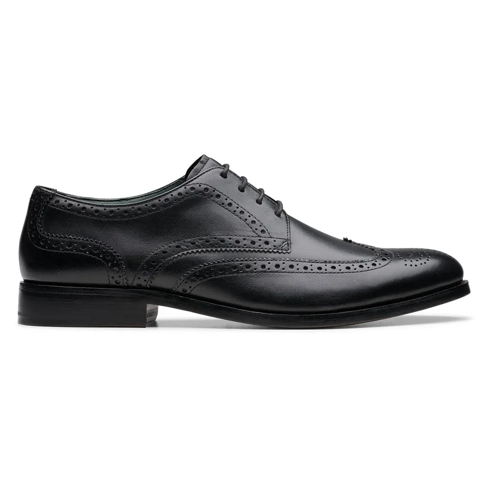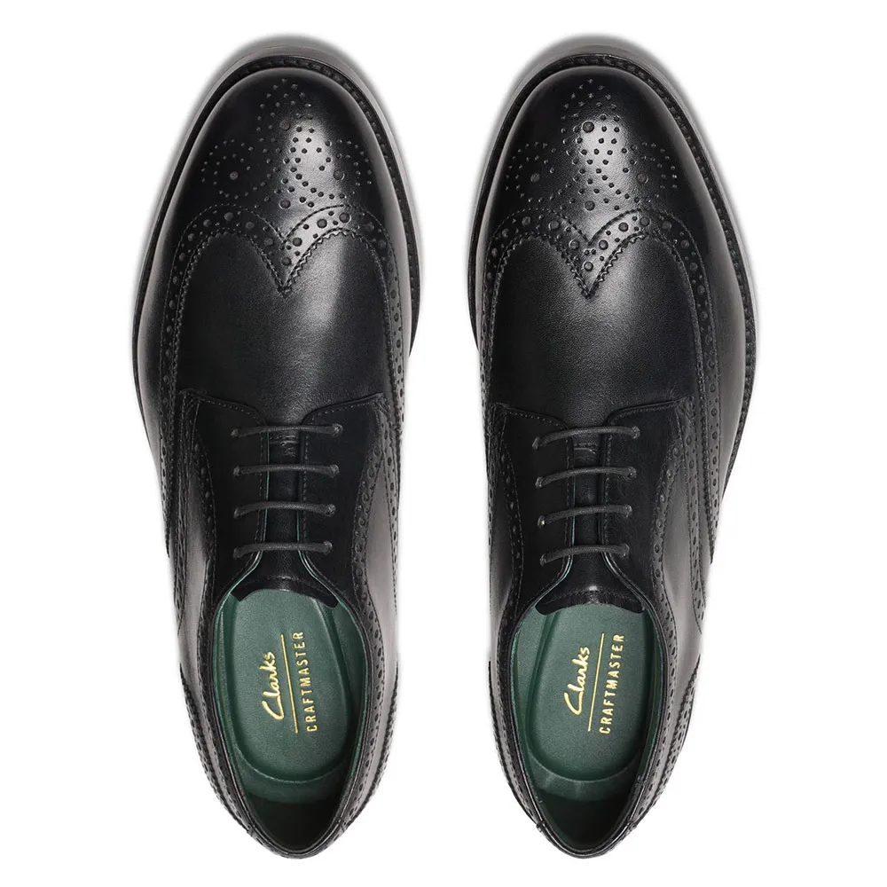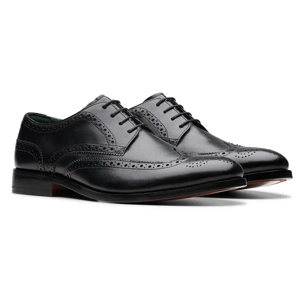 Модель CraftJames Tip, выполненная из гладкой кожи премиум-класса, дополняющей строгий дресс-код, что придает ей неподвластный времени эстетический вид. Этот силуэт на шнуровке с традиционными узорами типа "броги" дополнен темно-зеленой кожаной подкладкой для роскошного завершающего штриха.