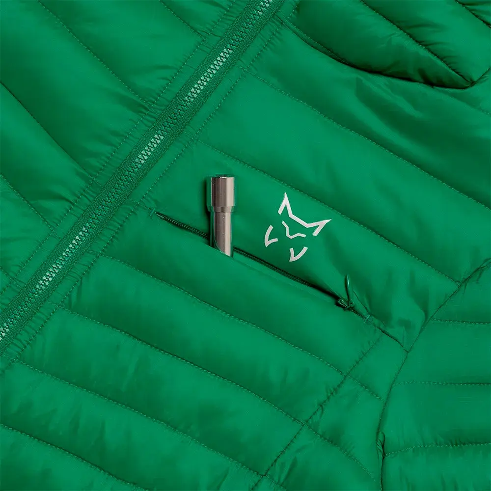 Наполнитель из переработанного волокна обеспечивает отличную теплоизоляцию без увеличения веса, а компактная конструкция позволяет легко хранить куртку, когда она не используется.