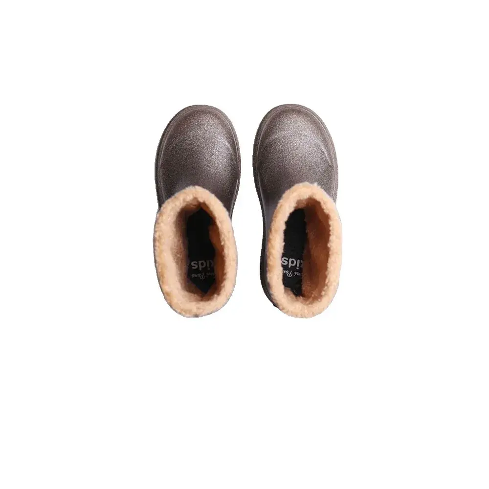 Эти детские водонепроницаемые ботинки выполнены в матовых тонах с блестящей глянцевой отделкой.