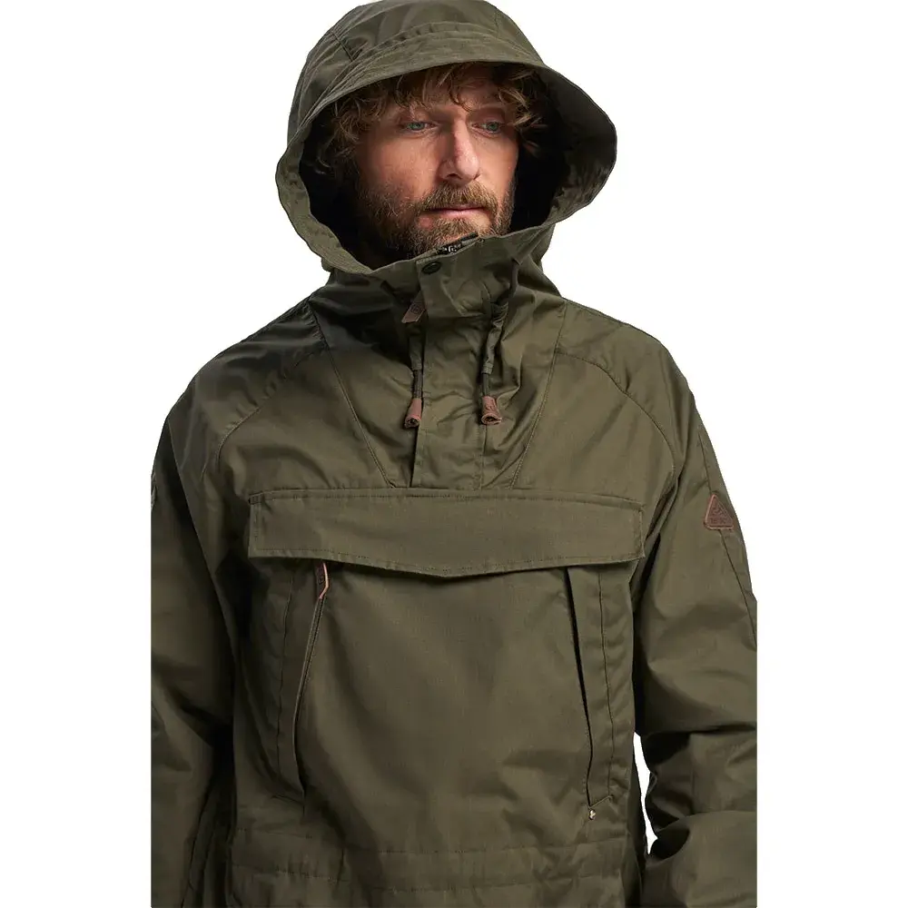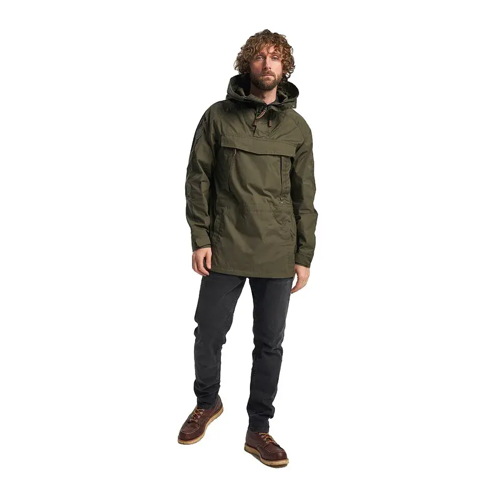Анорак Tenson Icon с регулируемой талией, манжетами и капюшоном обеспечивает идеальную посадку. Куртка хорошо вентилируется, а также обладает ветро- и водонепроницаемостью, защищая от непогоды. Изготовлен из материала EcoTrekk, состоящего на 65% из переработанного полиэстера и на 35% из мягкого органического хлопка. Оригинальная версия Mountain Anorak 55 была выпущена в 1955 году и использовалась в норвежской экспедиции 1971 года на вершину Уагорунчо, вершины в чилийских Андах высотой более 5800 метров. Помимо большого кармана-кенгуру спереди, анорак имеет два передних кармана на молнии. Стильный анорак, который легко надевается через голову благодаря продуманной конструкции боковой молнии. Mountain Anorak 55 достаточно стильный, чтобы носить его в городе, и достаточно практичный, чтобы взять его с собой в следующую экспедицию.