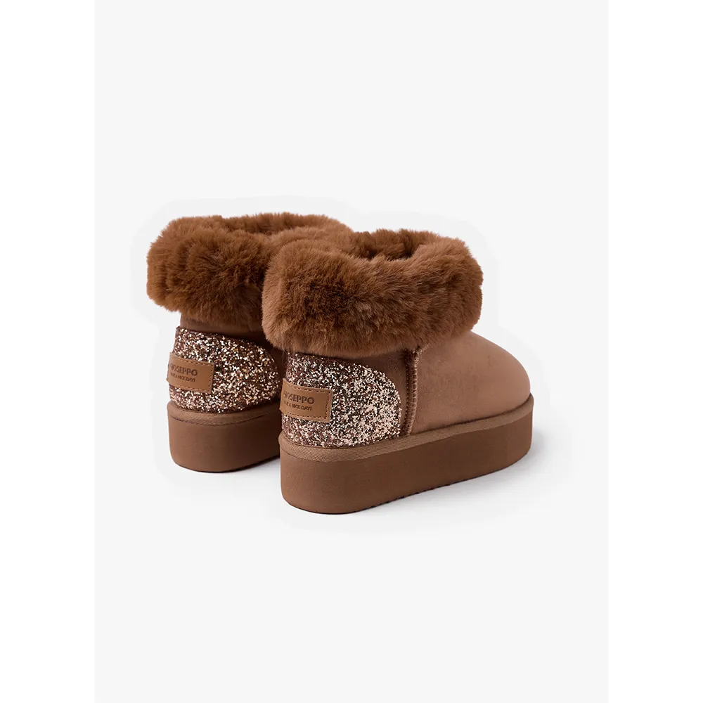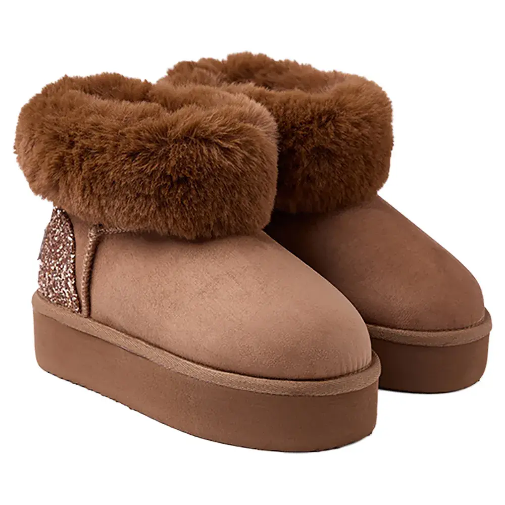 Блестящие австралийские ботинки с меховым воротником и платформой.