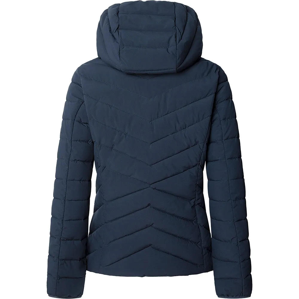 Водоотталкивающая короткая куртка-пуховик с мягким матовым шевроном, с эффектом несъемной внутренней отделки и фирменной резиновой нашивкой на левом рукаве.
