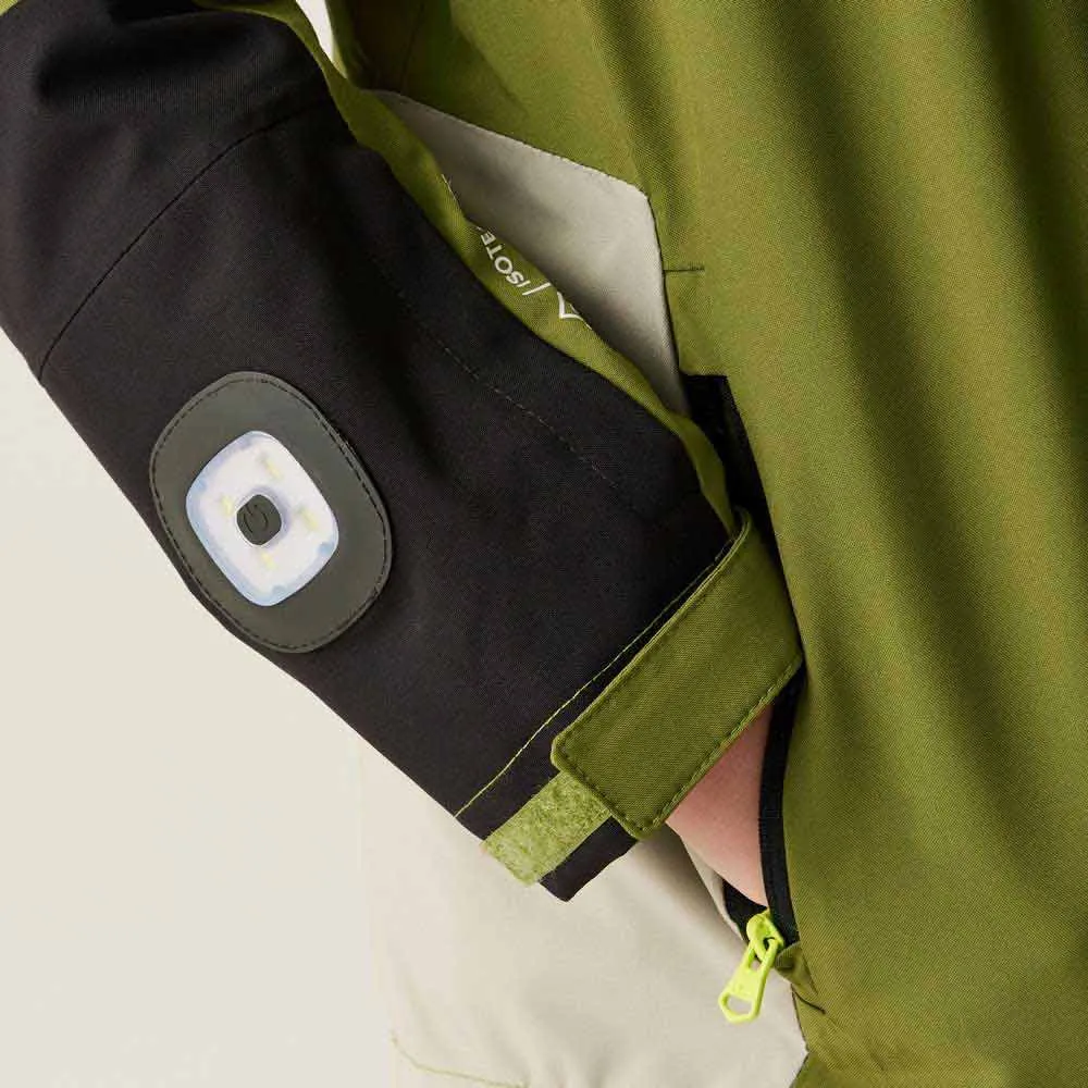 Изготовленная из водонепроницаемой и дышащей эластичной ткани Isotex, детская куртка обеспечивает маневренность и полную защиту.
