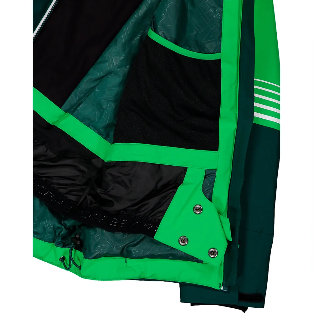 Три кармана, один из которых расположен высоко на груди, гарантируют практичность и безопасное пространство для мелких предметов во время занятий на снегу.