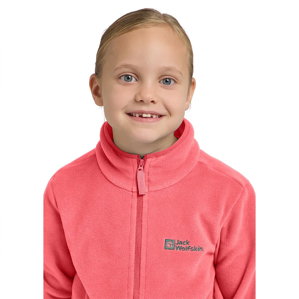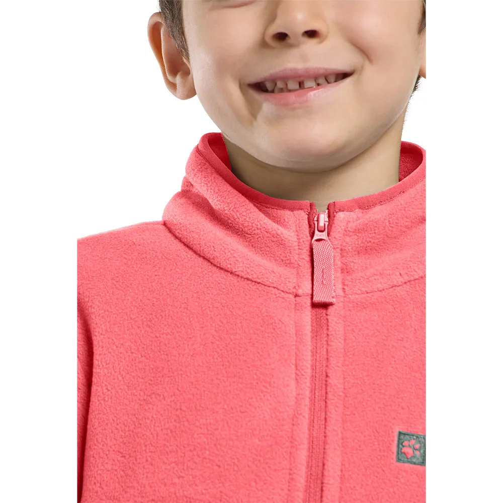 Детская куртка TAUNUS JACKET, незаменимая на каждый день в любых приключениях, изготовлена из мягкого, уютного переработанного флиса, который обеспечивает отличную изоляцию, дышит, отводя лишнее тепло, и очень легко стирается.